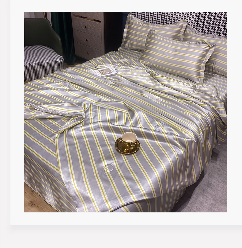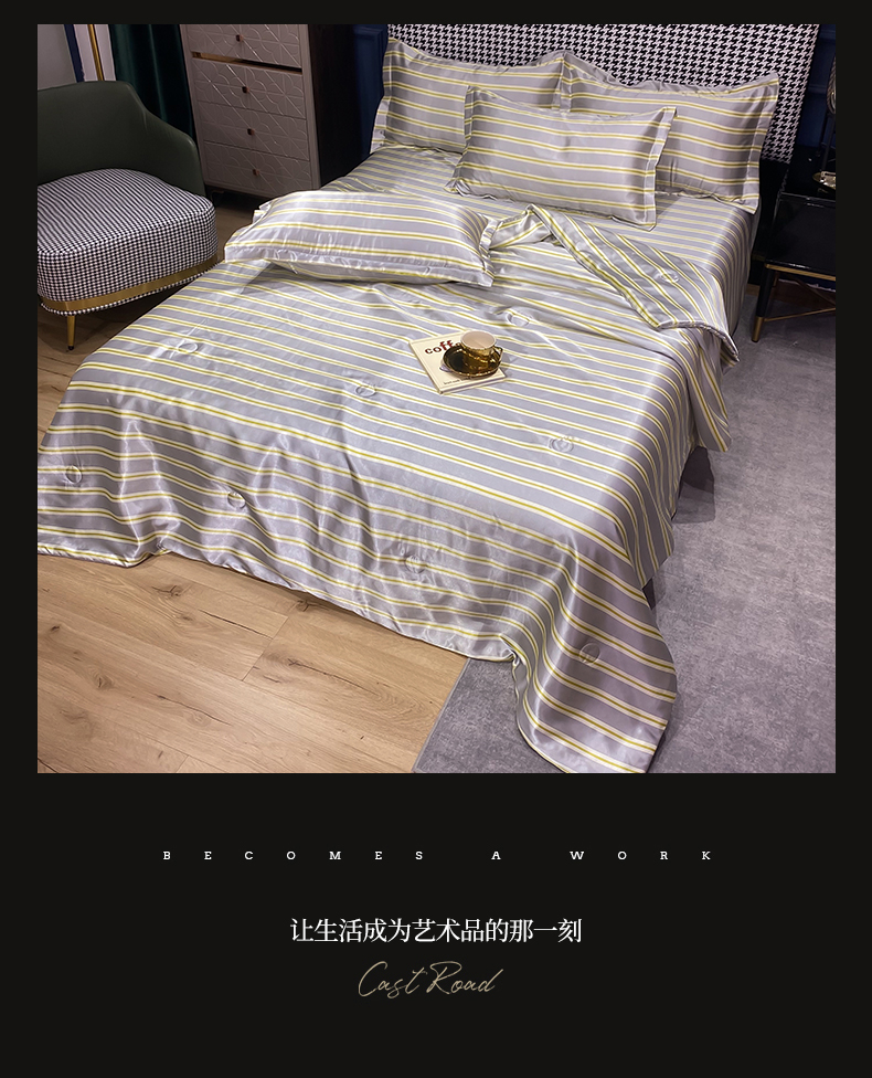 当前位置: 91家纺网 > 商品网购 > 床品套件 > 四件套 > 夏被四件套 > 经年 2025新款条纹丝绸冰丝夏被 灰蓝方格-夏被