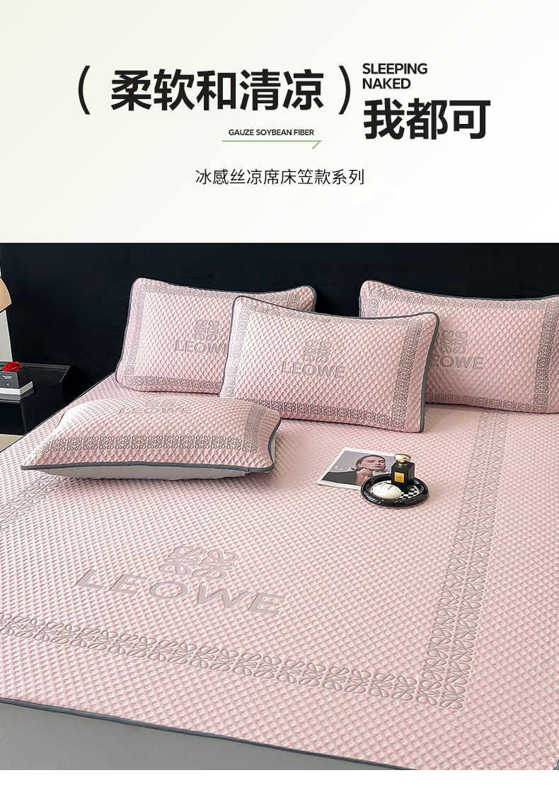 商品名称:首尔家纺 2025新款大版凉感丝凉席 伊薇-粉