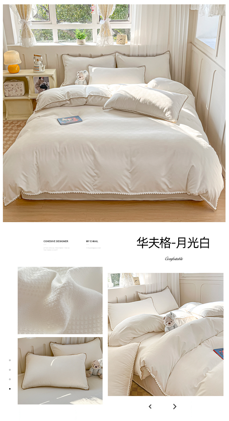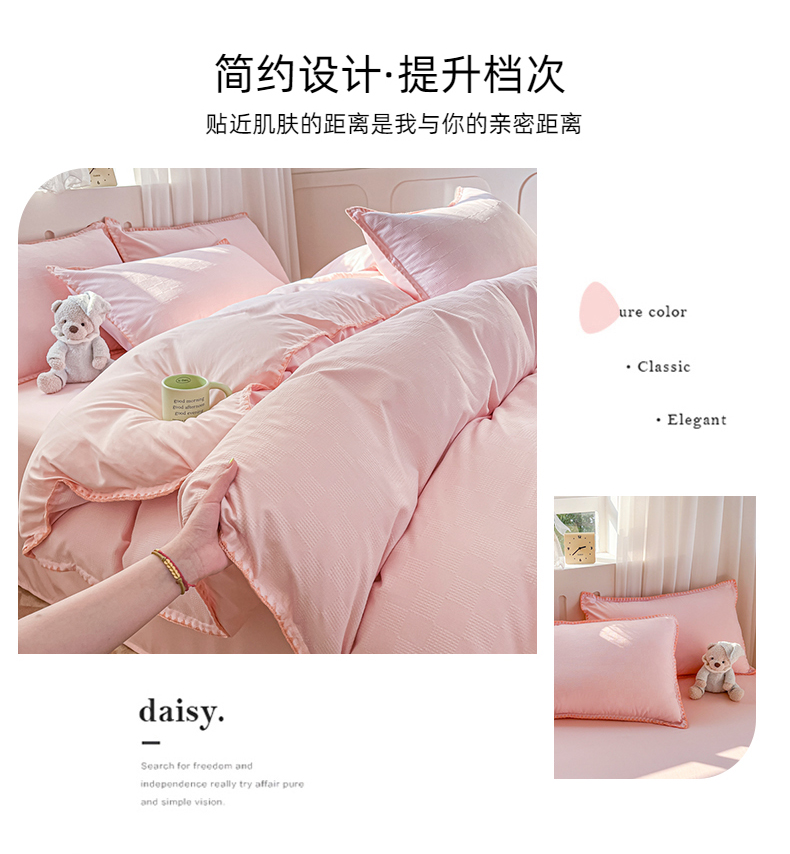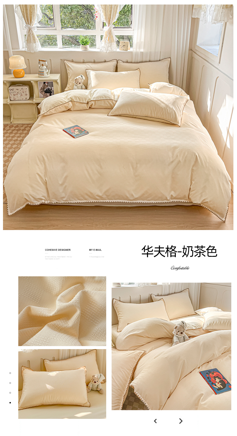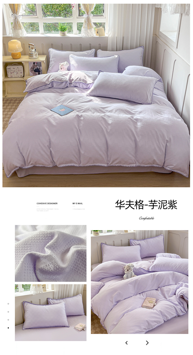 (总)豪美鑫 2025新款超柔水洗棉花边四件套-克拉拉系列,克拉拉--纯白,克拉拉--果绿,克拉拉--米黄,克拉拉-嫩粉,克拉拉--香芋紫