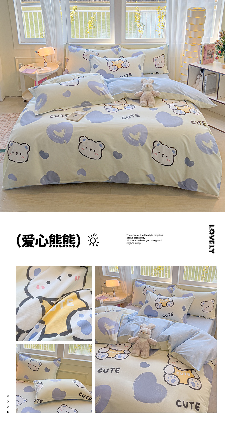 (总)拾物记 2023新款喷气全棉卡通小清新系列单床单,欢乐萌熊,奶油兔-红