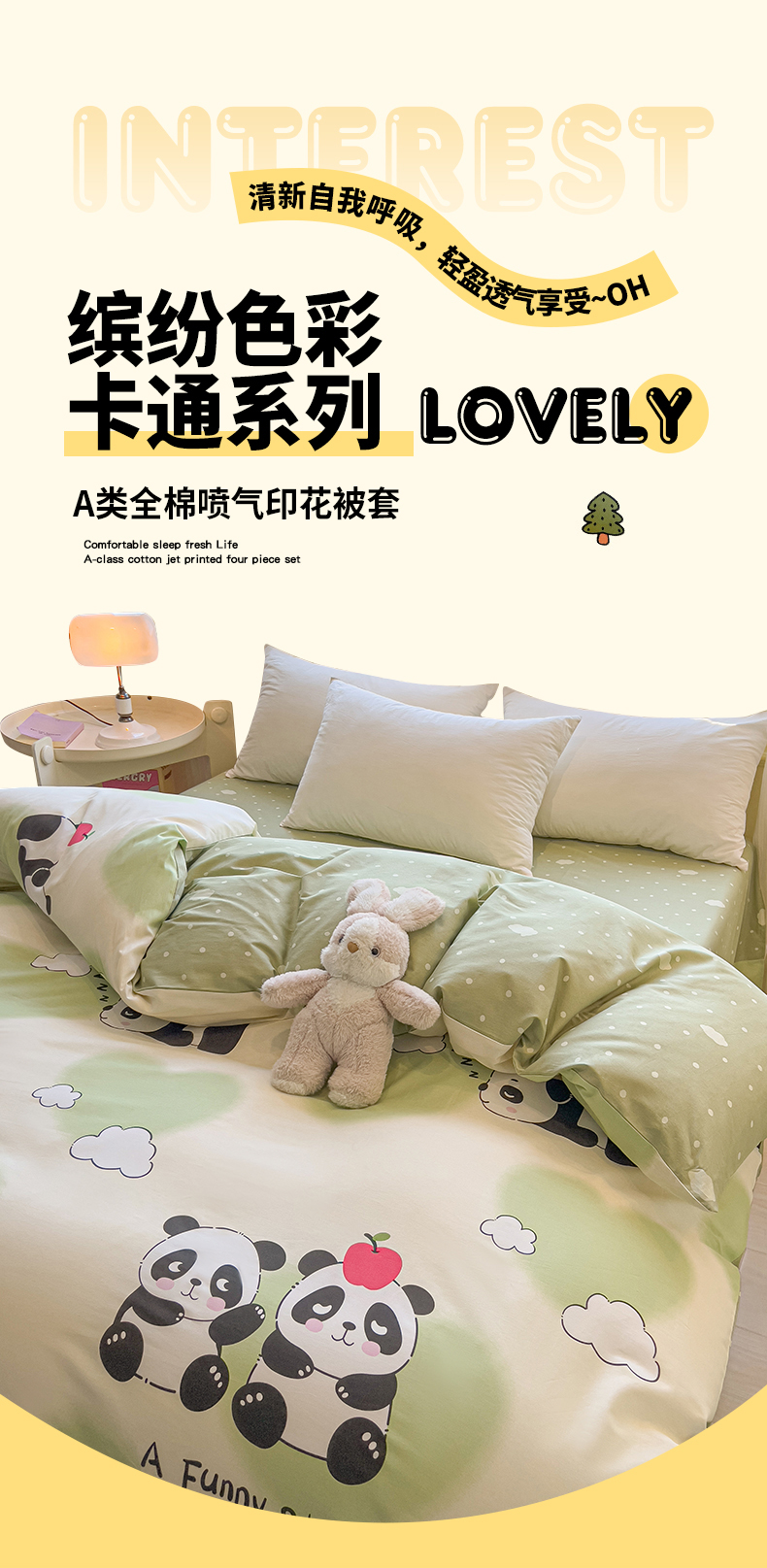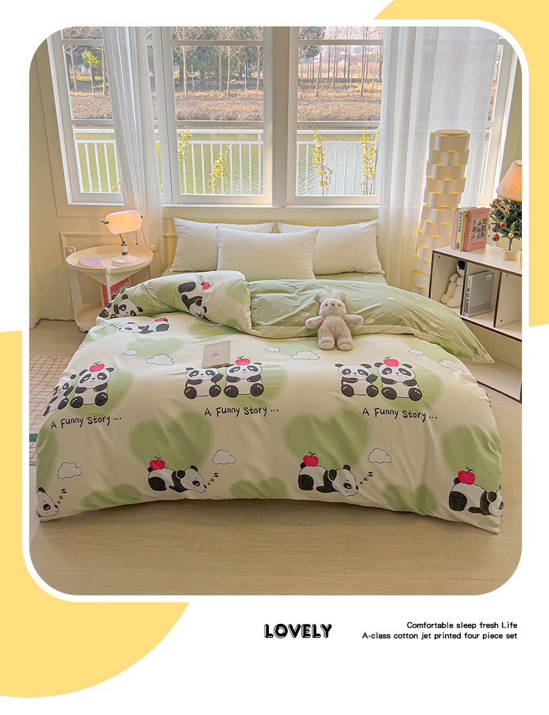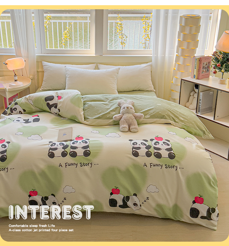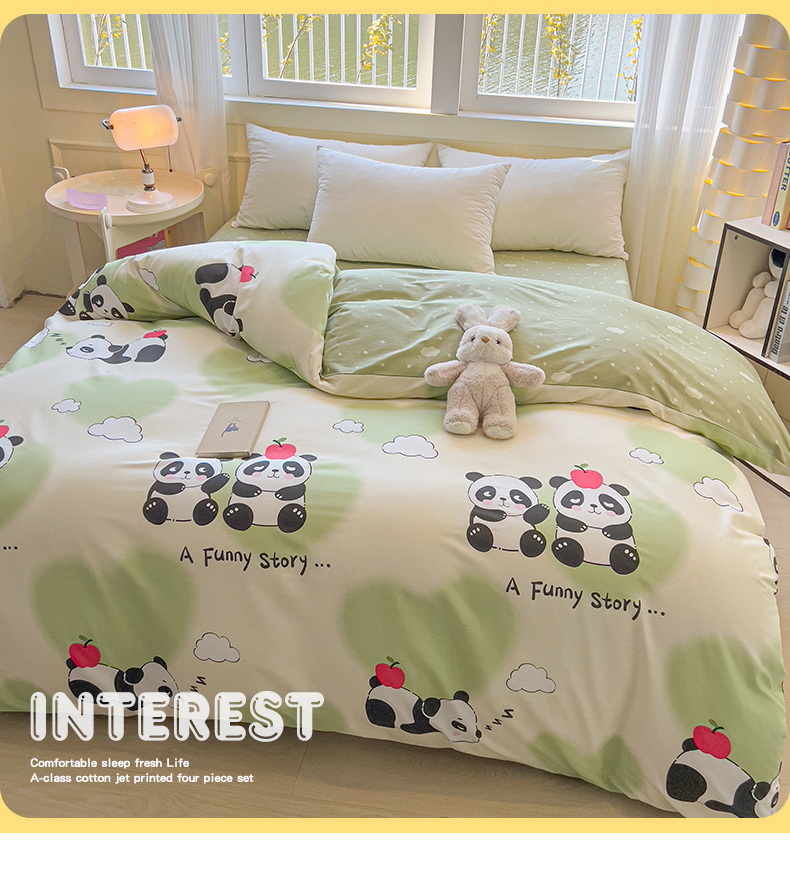 拾物记 2025新款A类无荧光全喷气全棉12868单被套 熊猫趣事