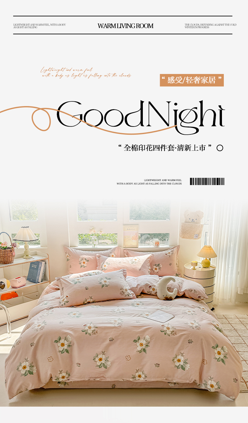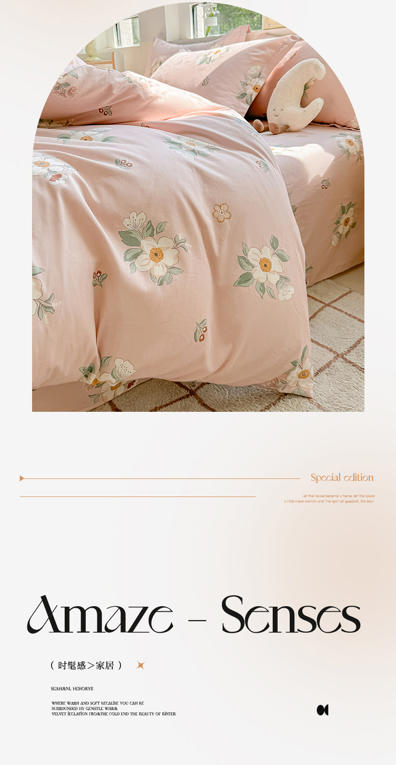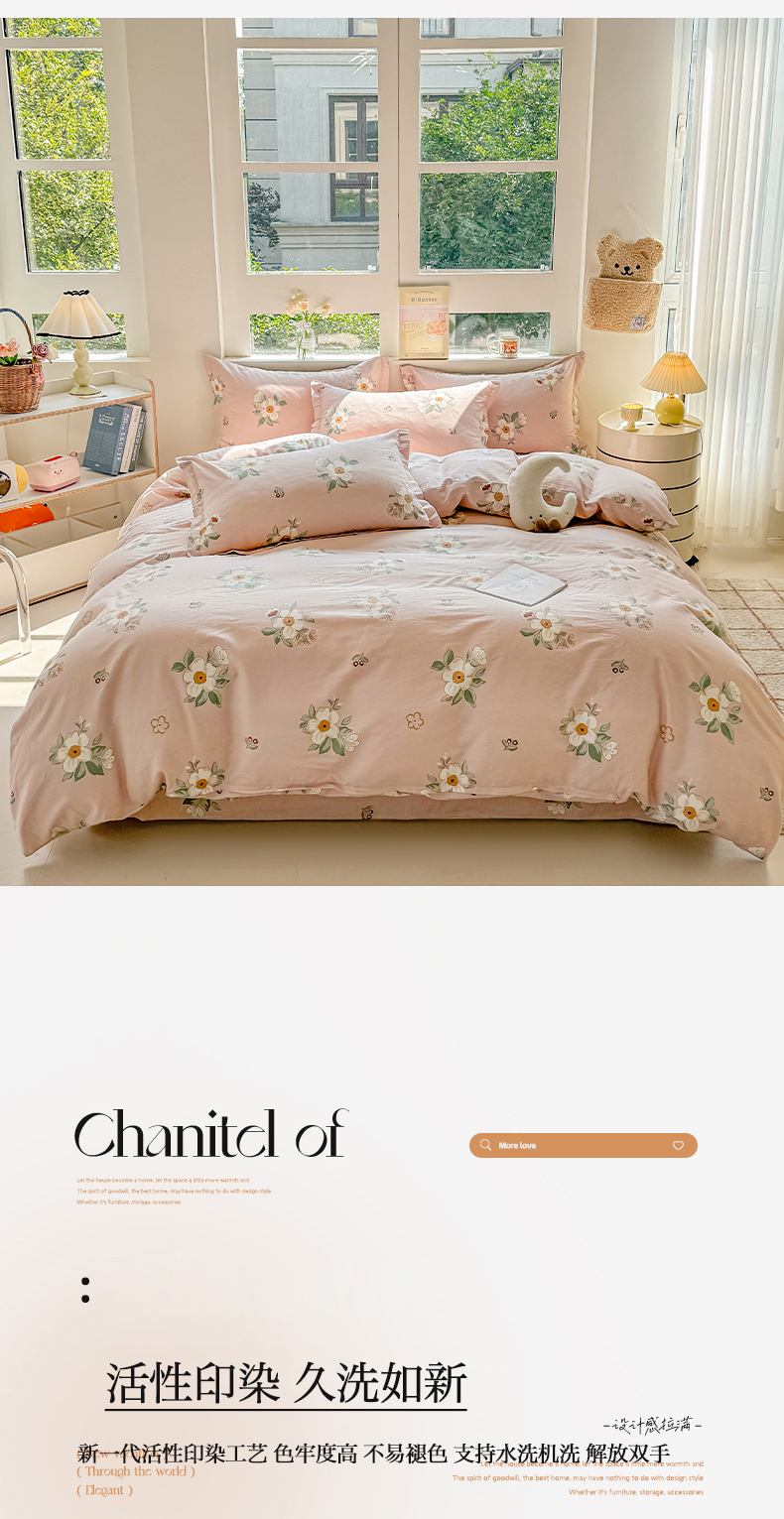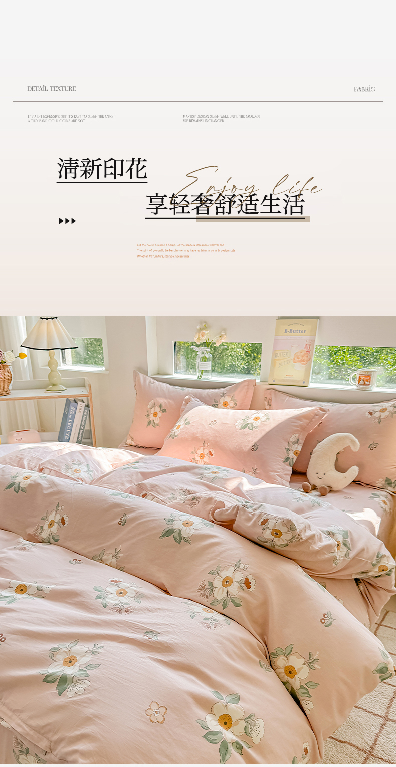 当前位置: 91家纺网 > 商品网购 > 床品套件 > 四件套 > 其它四件套 > 名优家纺 2025新款A类全棉纯棉韩版印花四件套 寻香-粉