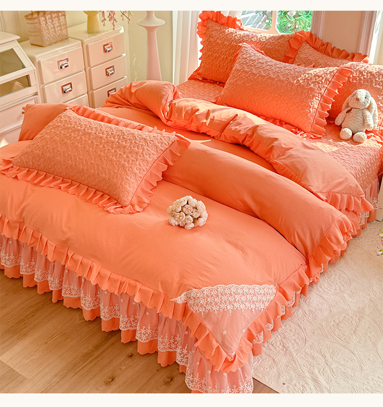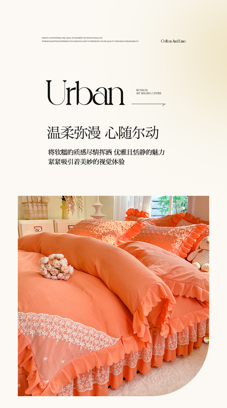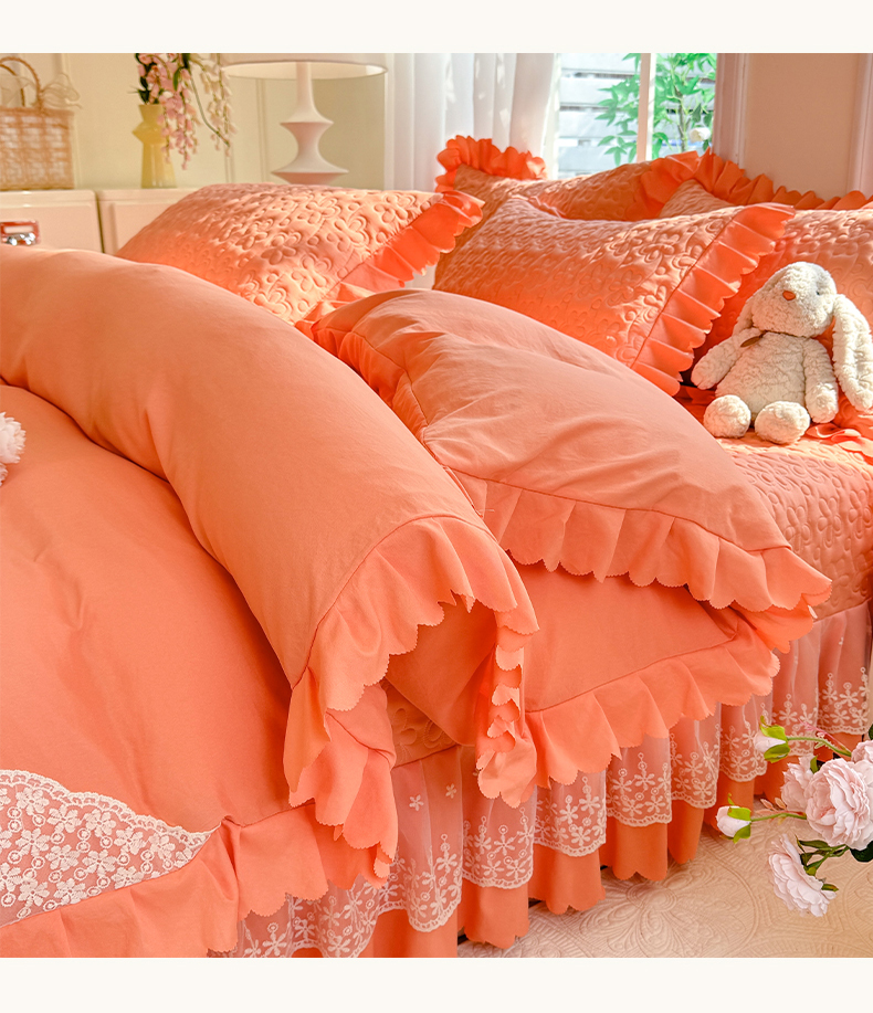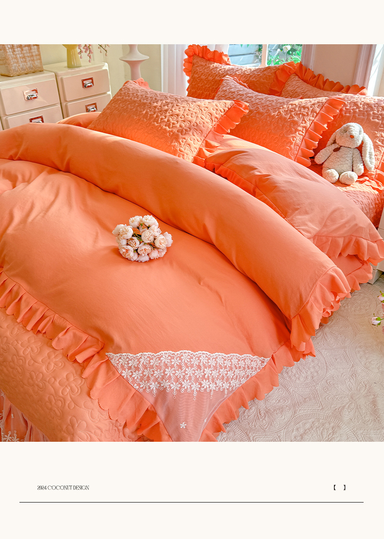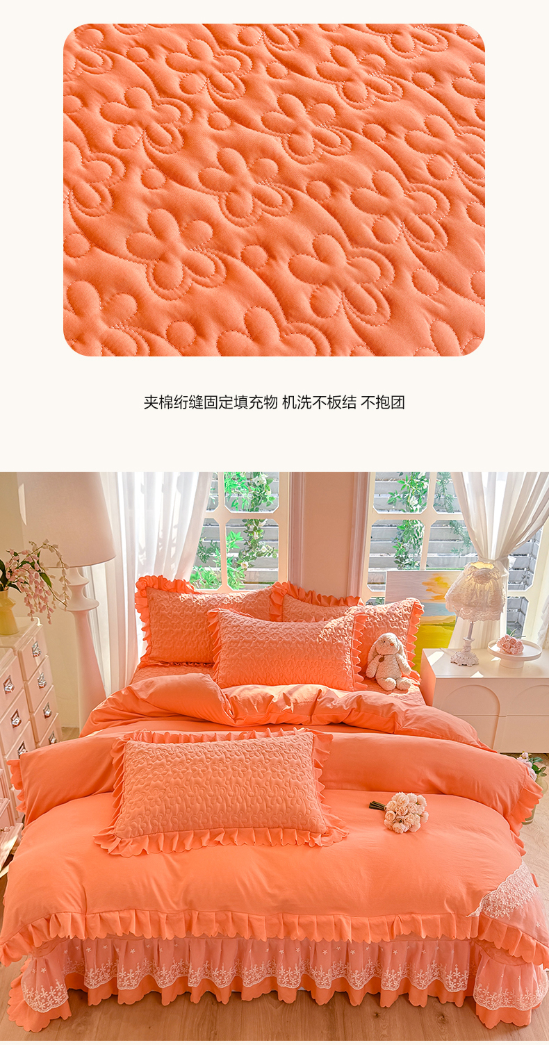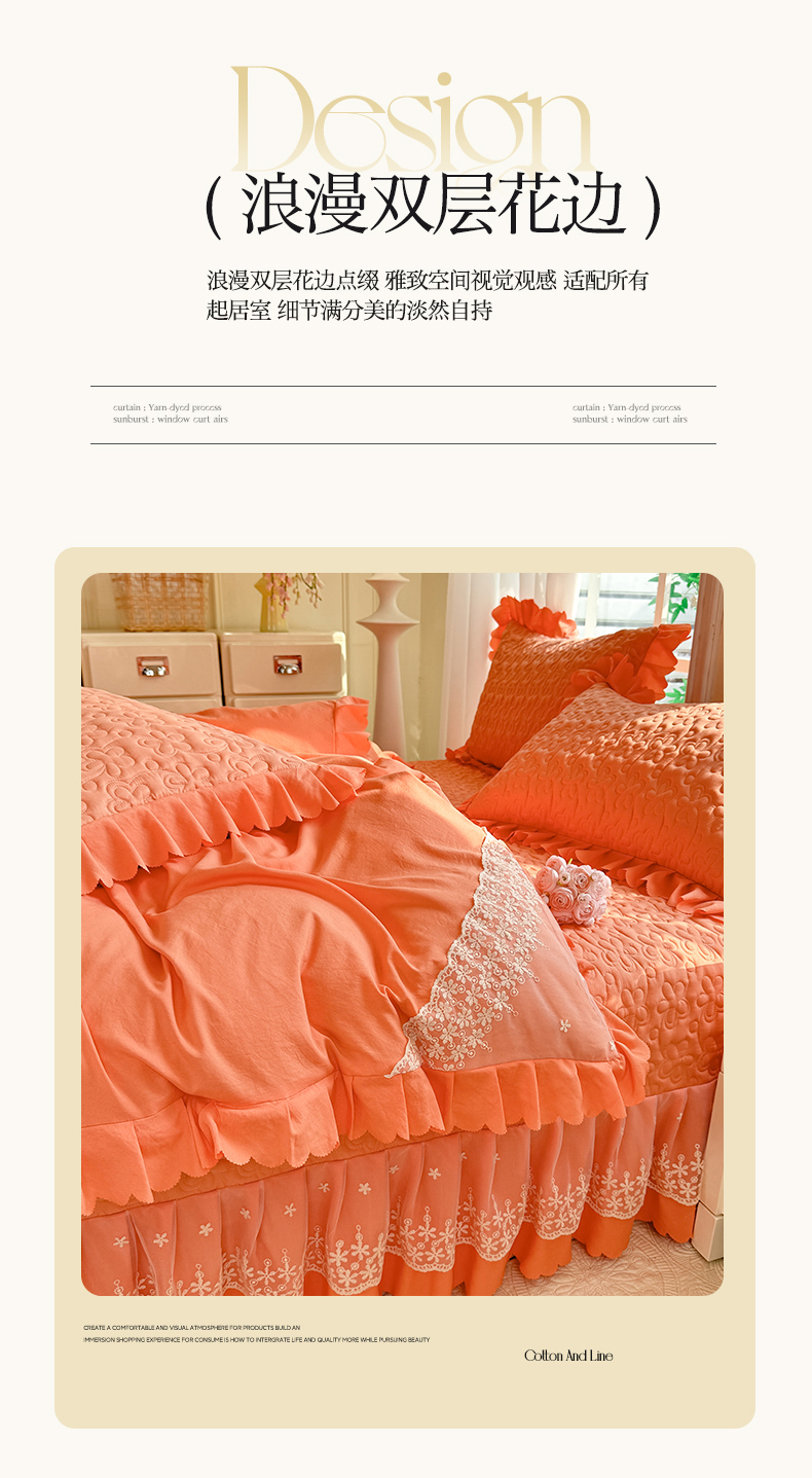 当前位置: 91家纺网 > 商品网购 > 床品套件 > 四件套 > 其它四件套 > 九诺家纺 2025新款花夕云朵棉蕾丝花边床盖四件套 花夕-香妃橙