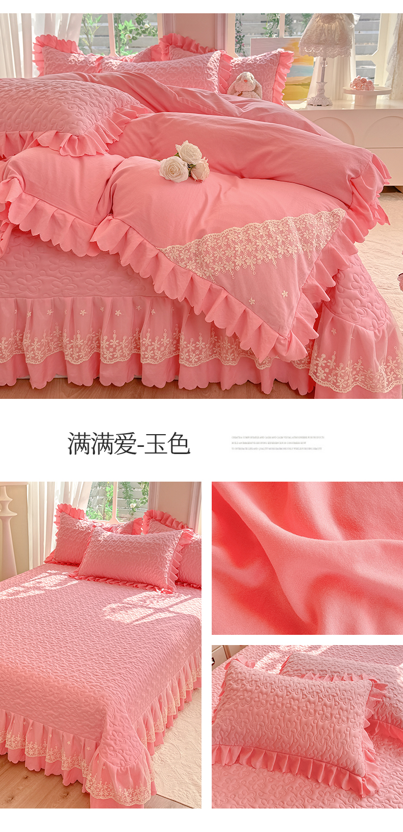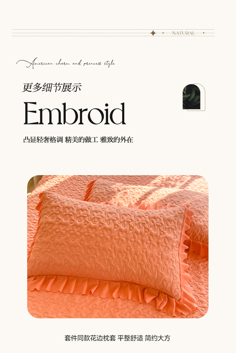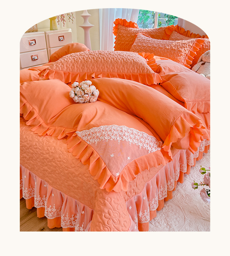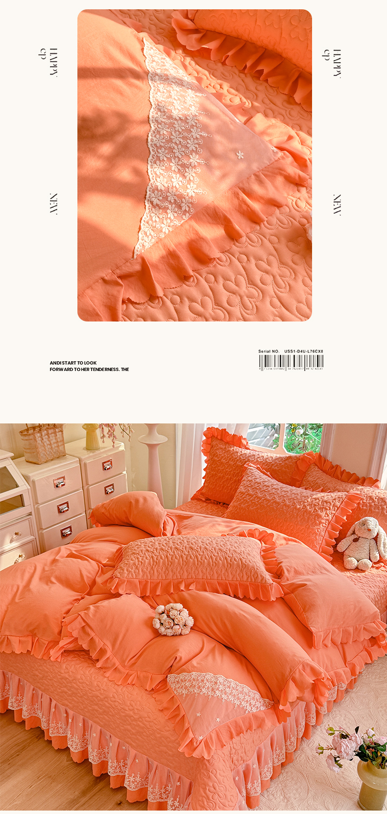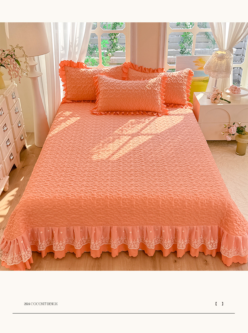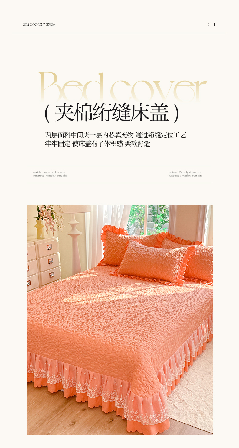 当前位置: 91家纺网 > 商品网购 > 床品套件 > 四件套 > 其它四件套 > 九诺家纺 2025新款花夕云朵棉蕾丝花边床盖四件套 花夕-香妃橙