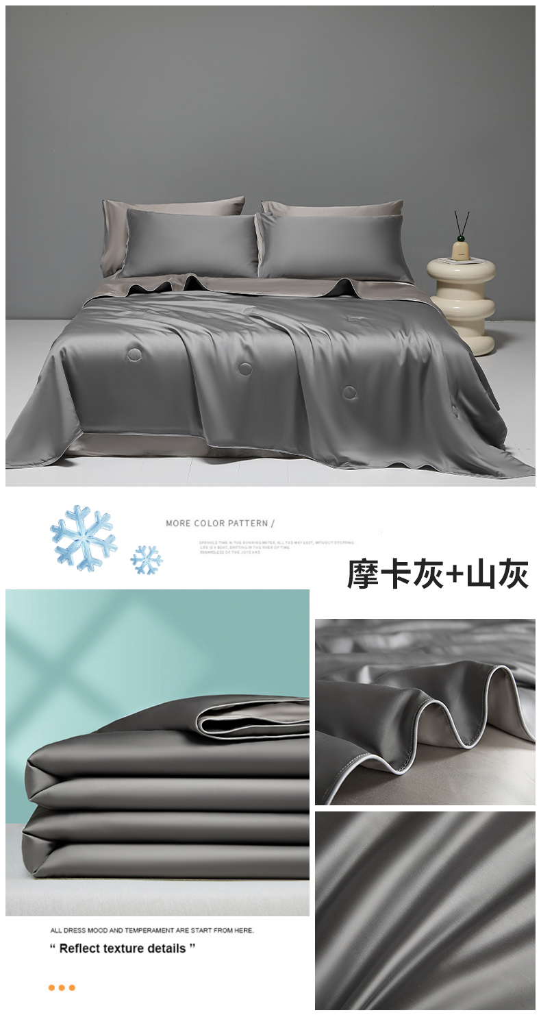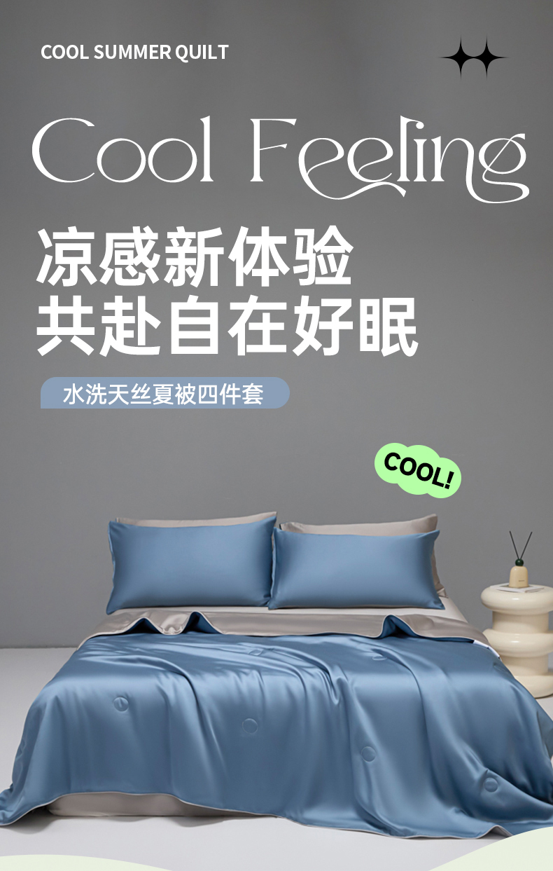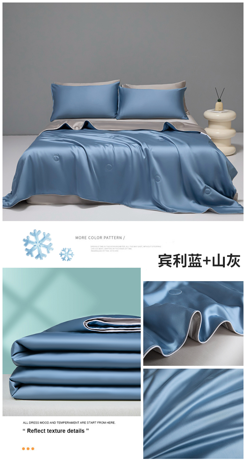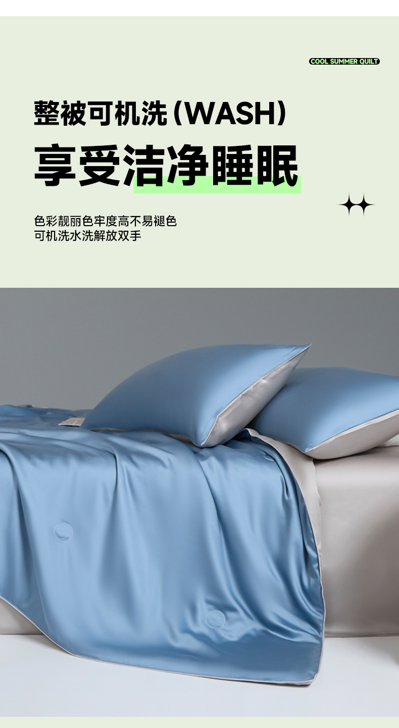 (总)利欧 2025新款直播电商爆款水洗真丝夏被四件套夏凉被空调被,翠绿,淡紫,米黄,浅玉,香槟,银灰,淡绿,海蓝,姜黄