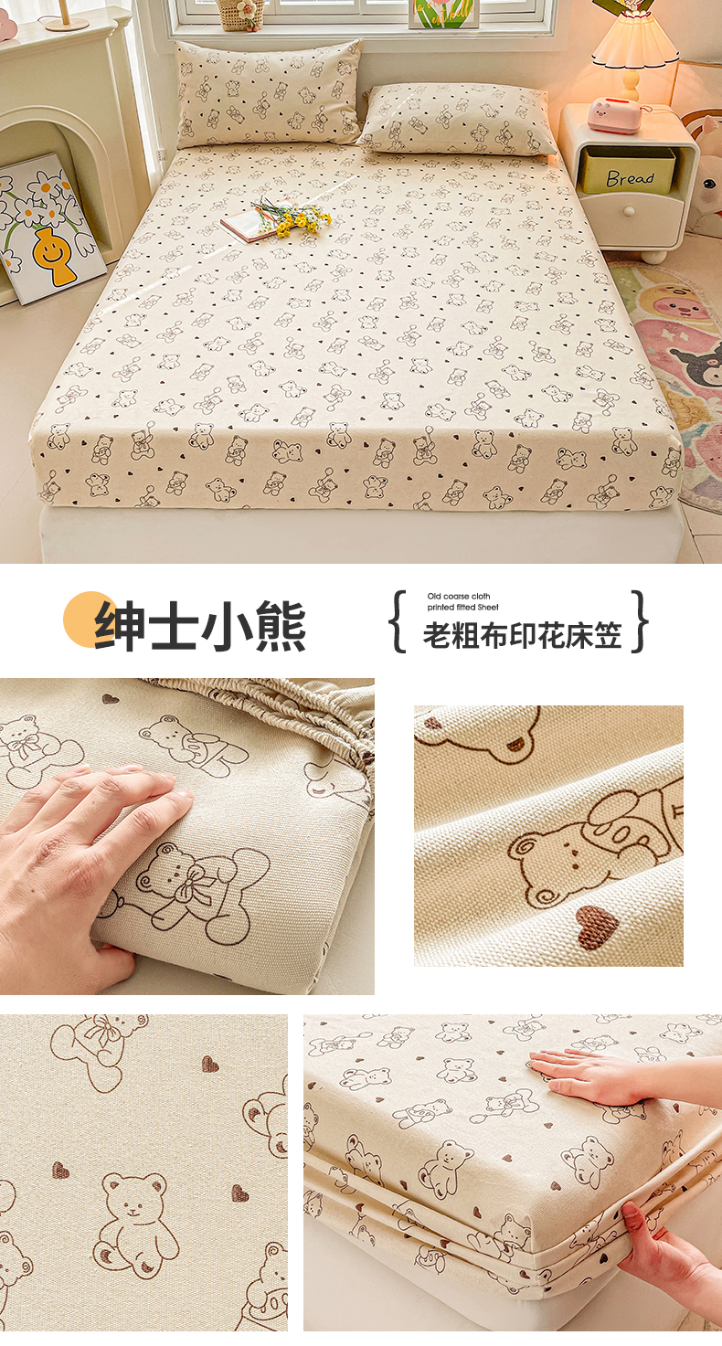• 91家纺网 家纺一手货源 找家纺 晓时候2025新款老粗布床笠凉席 绅士小熊