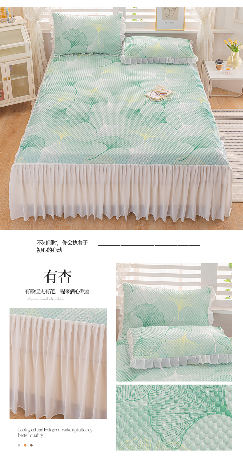 2025新款A类冰豆豆床裙款印花凉席 有杏