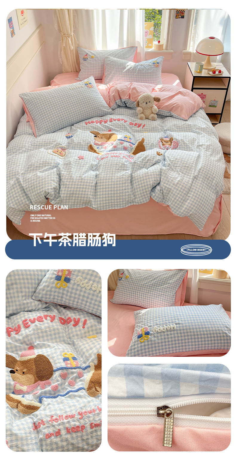 当前位置: 91家纺网 > 商品网购 > 床品套件 > 四件套 > 水洗棉四件套 > 2025新款水洗棉猫咪毛巾绣四件套 小蓝格喵咪