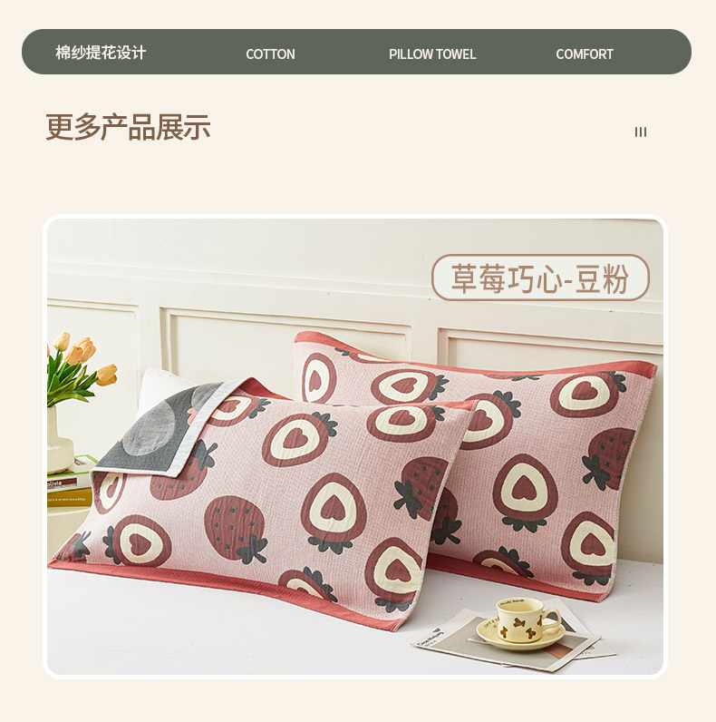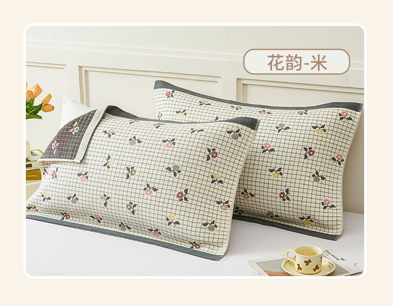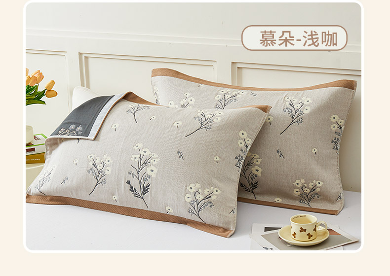 • 91家纺网 家纺一手货源 找家纺 2025新款纯棉加厚精梳棉纱布枕巾 花韵-浅咖 52*78cm/对