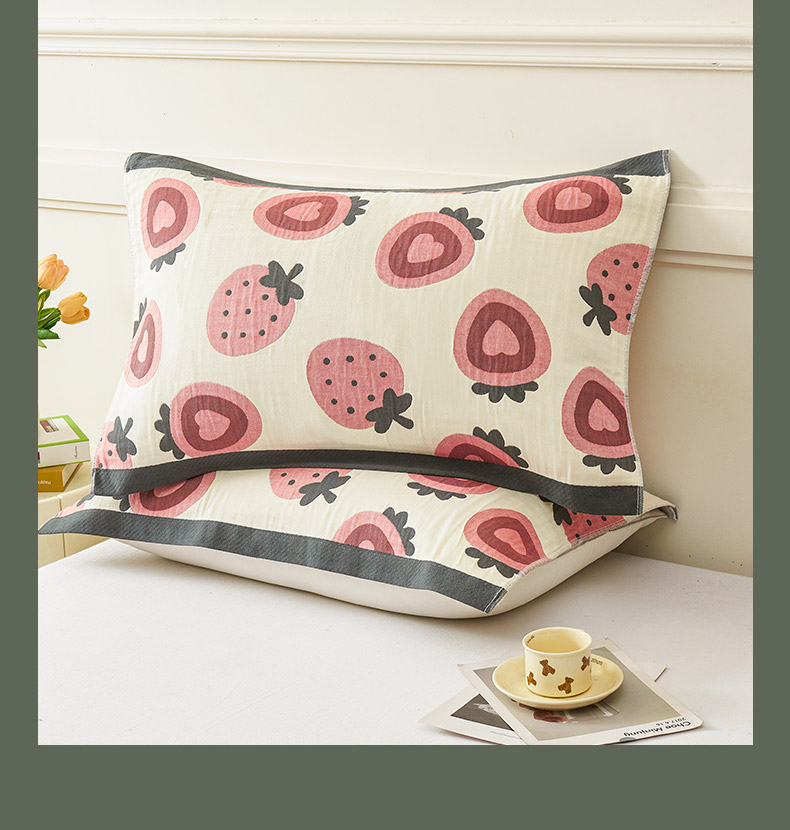 2025新款纯棉加厚精梳棉纱布枕巾 花韵-浅咖 52*78cm/对