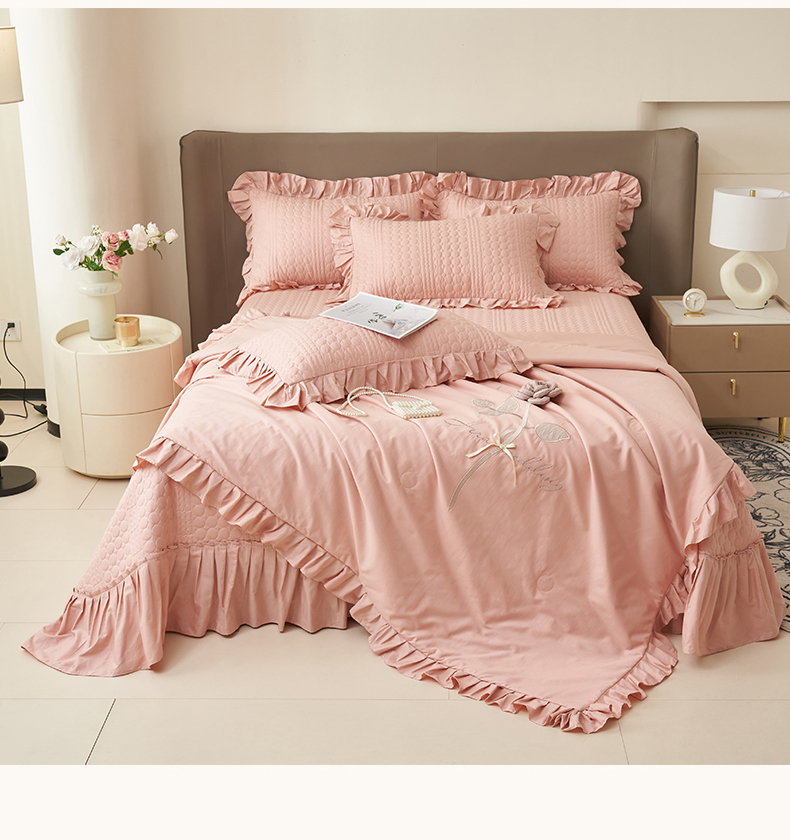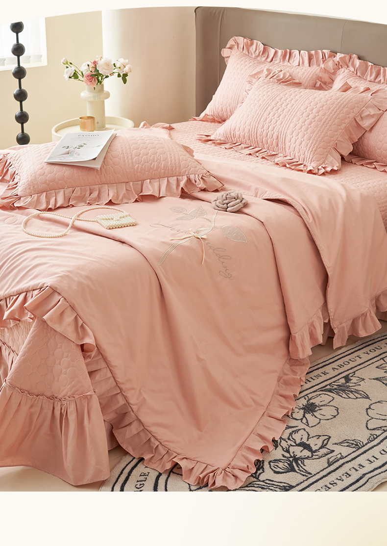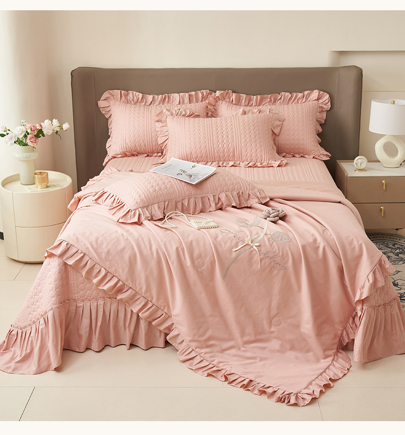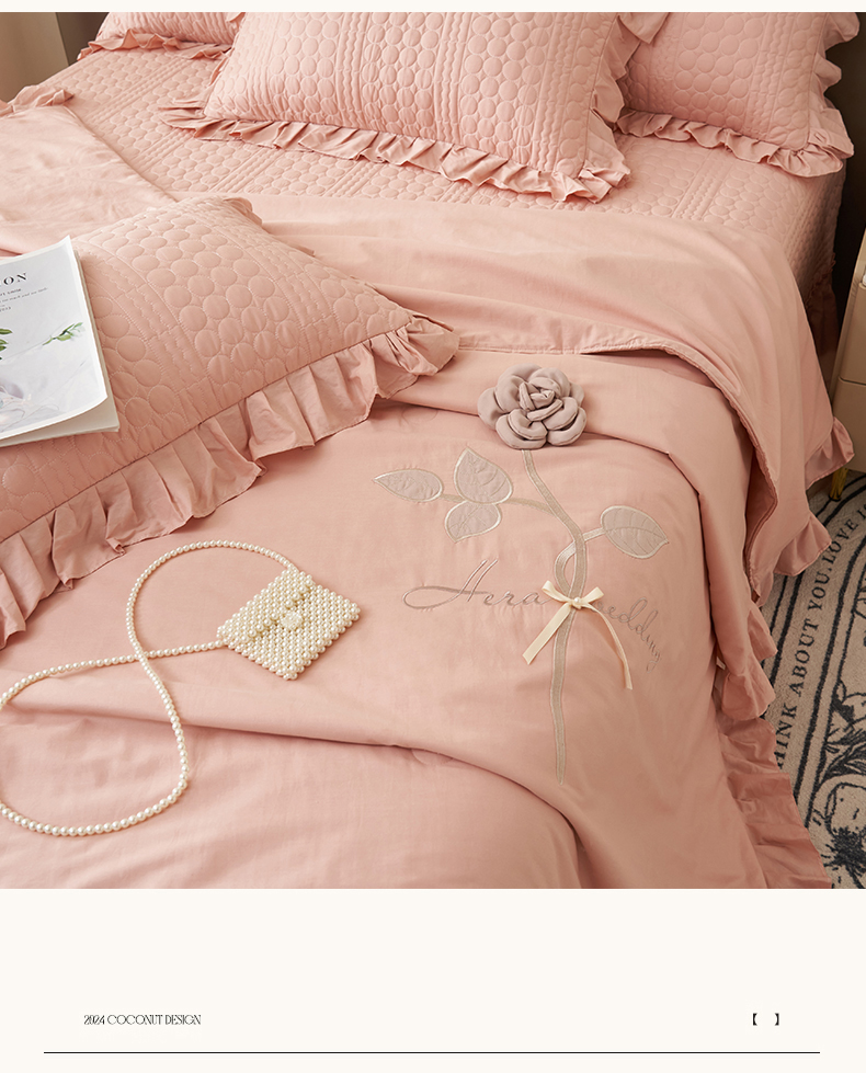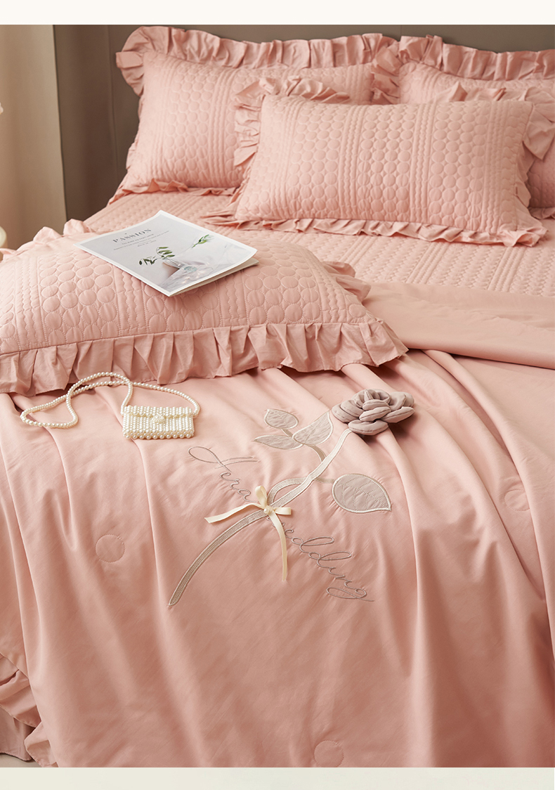 商品名称:恒爱 2025新款A类全棉纯棉多功能夏被夏凉被空调被四件套-一枝独秀 豆沙