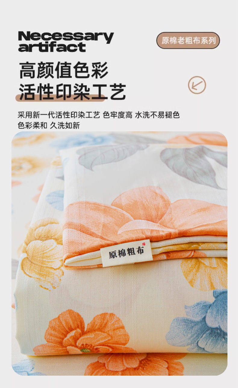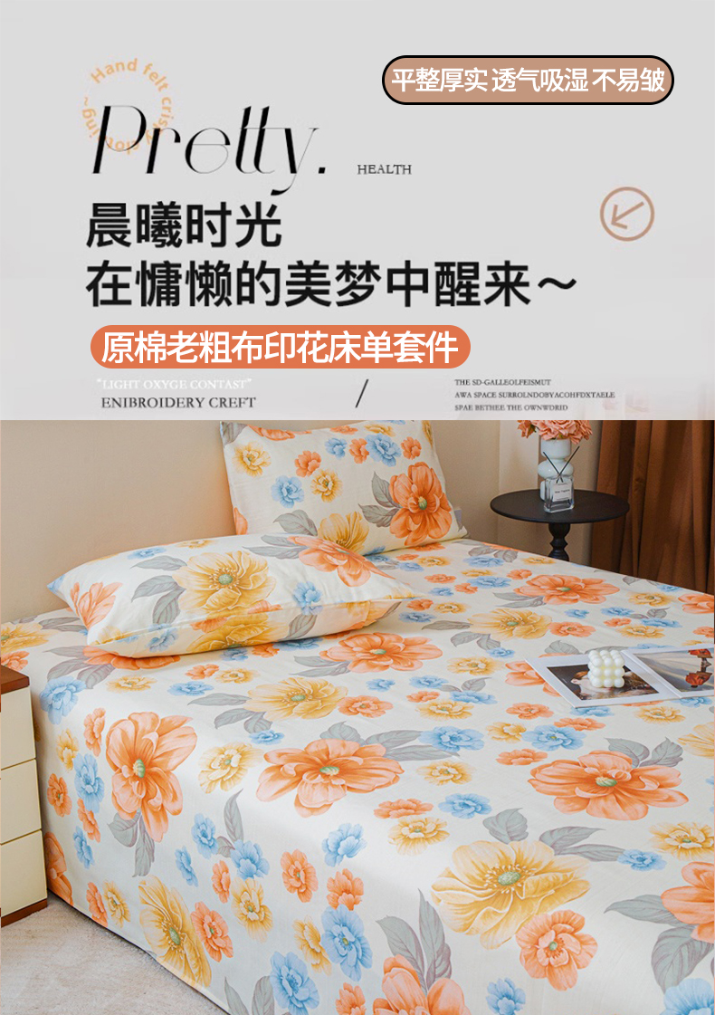 • 91家纺网 家纺一手货源 找家纺 2025新款原棉老粗布床单混纺含棉-床单 L花丘