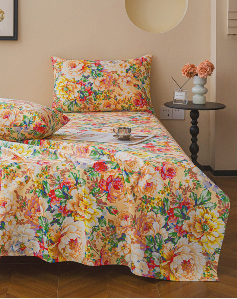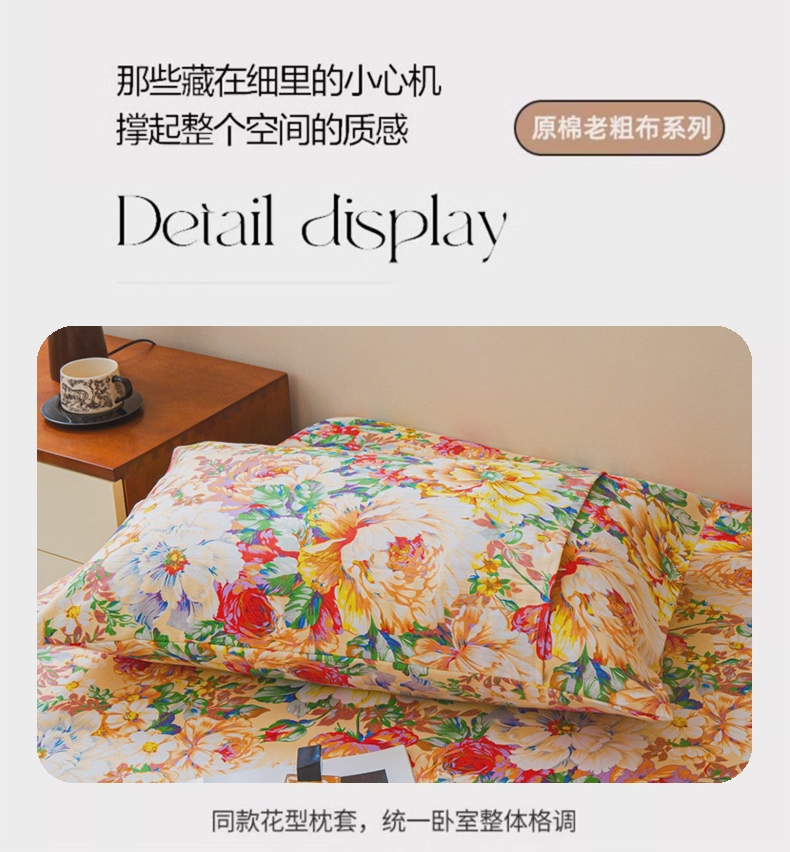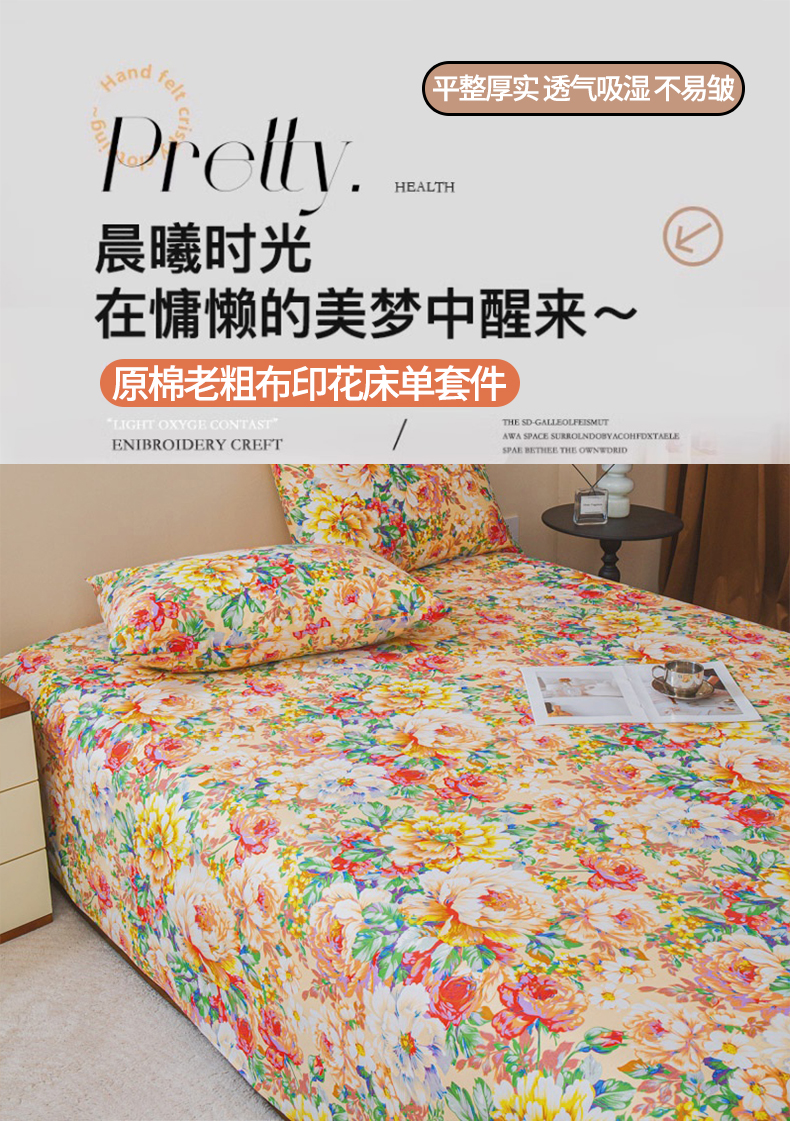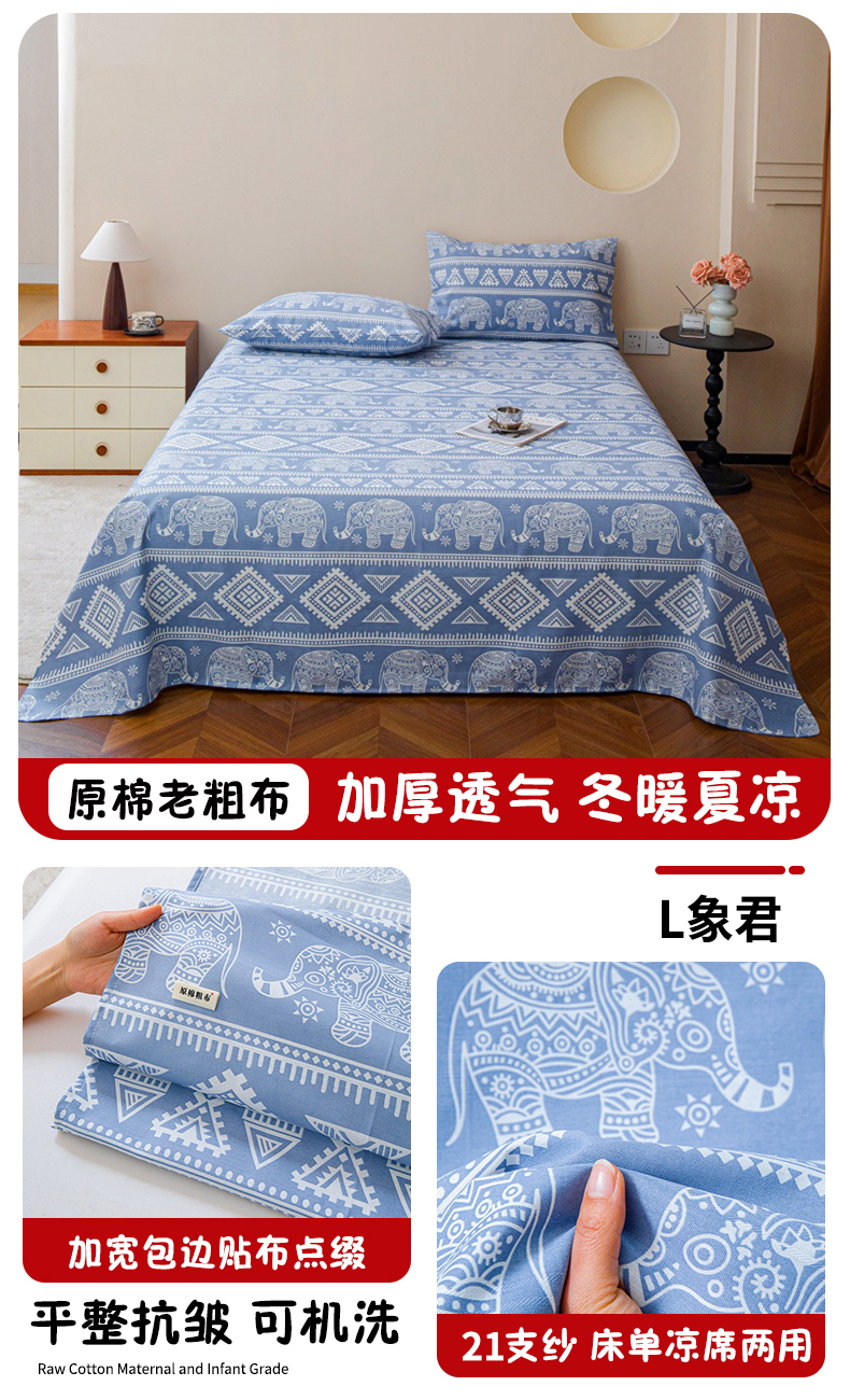 • 91家纺网 家纺一手货源 找家纺 【长期供货】2025新款原棉老粗布床单混纺含棉-床笠 L盛开