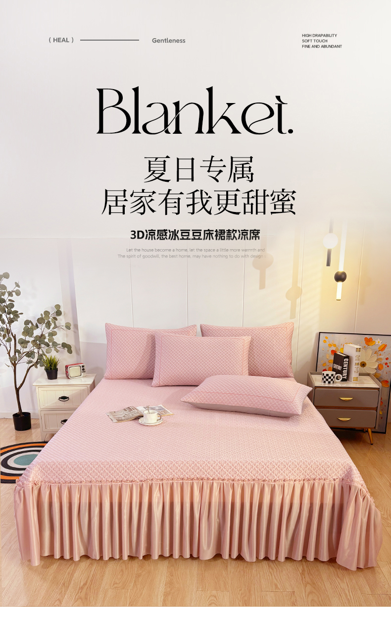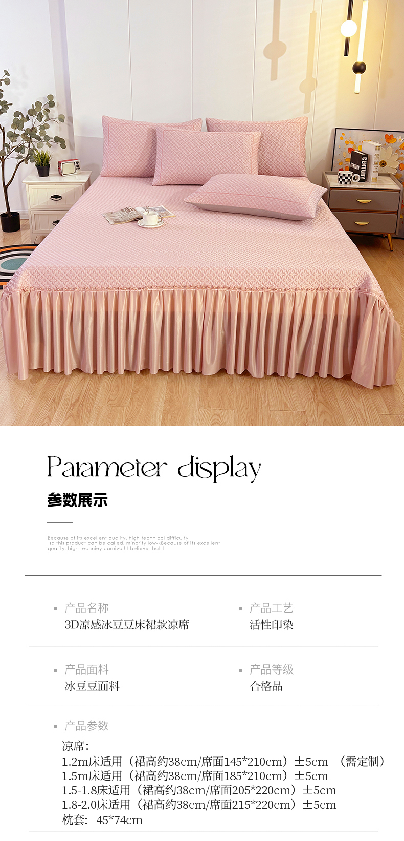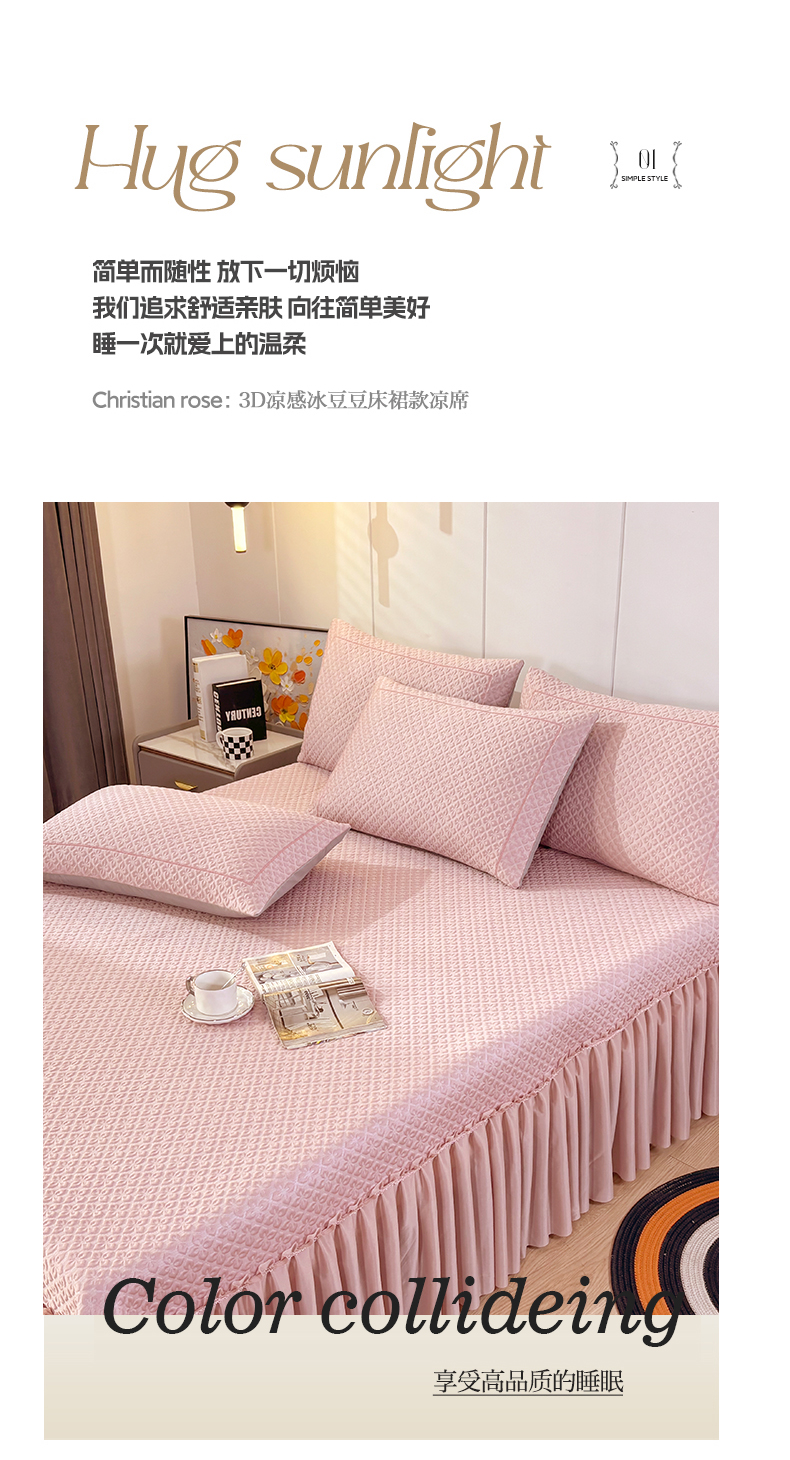 当前位置: 91家纺网 > 商品网购 > 床上用品 > 凉席 > 其他凉席 > 伊而梦蚊帐 2025新款A类3D凉感冰豆豆床裙款凉席席子 单边方格四叶-粉三件套