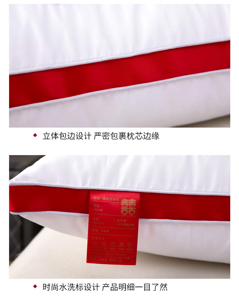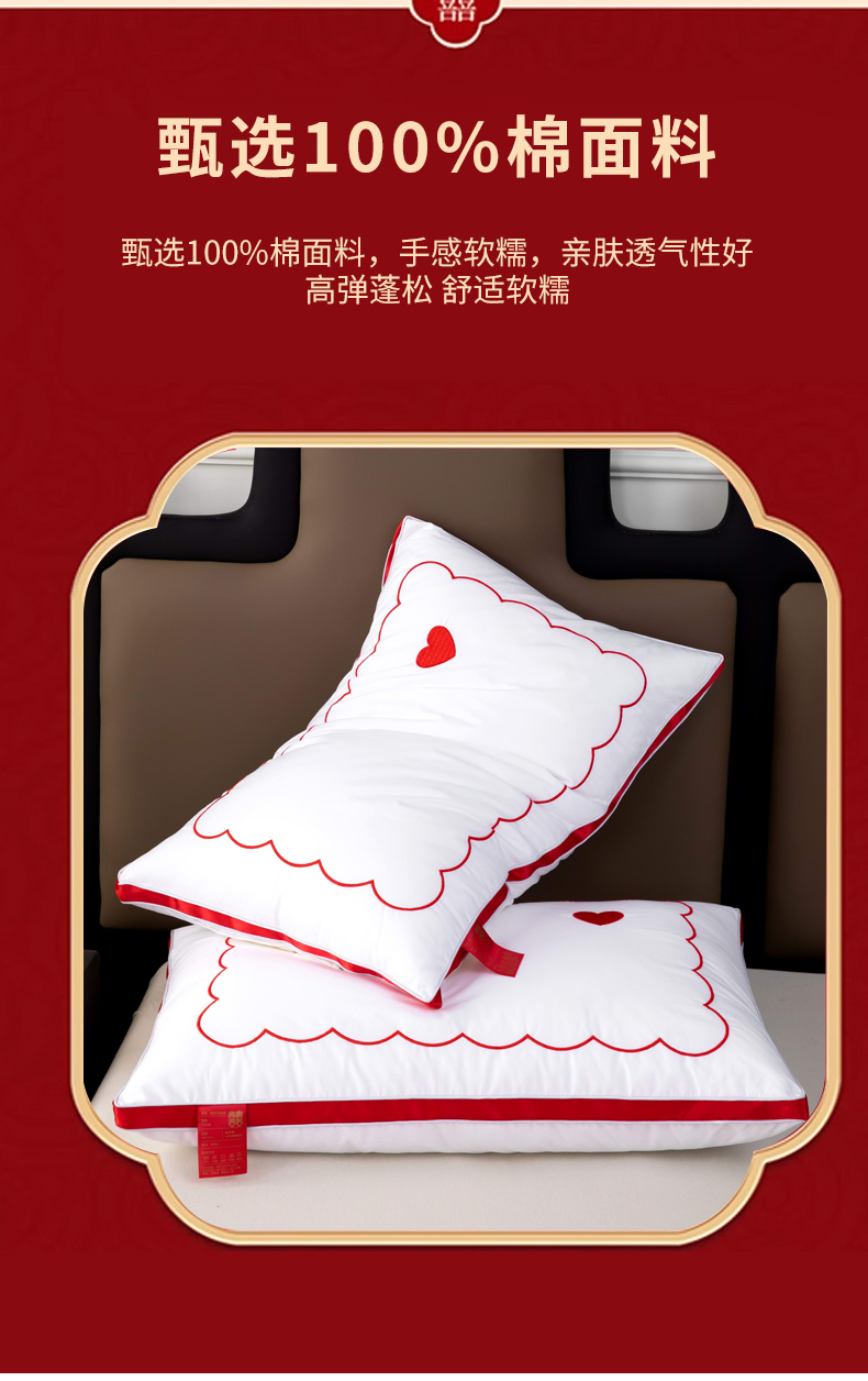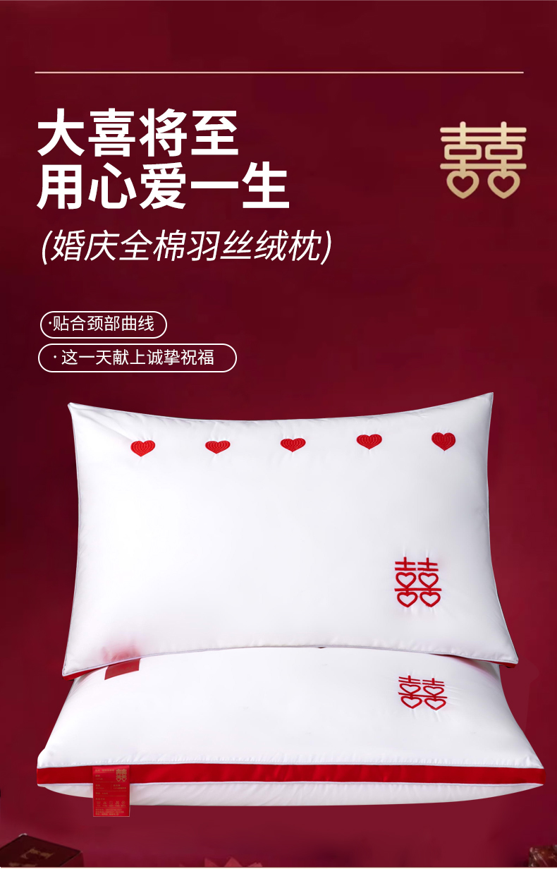 当前位置: 91家纺网 > 商品网购 > 枕头/枕芯/保健枕/颈椎枕 > 普通枕芯 > 枕之坊 2025新款婚庆羽丝枕枕头枕芯 心心相印