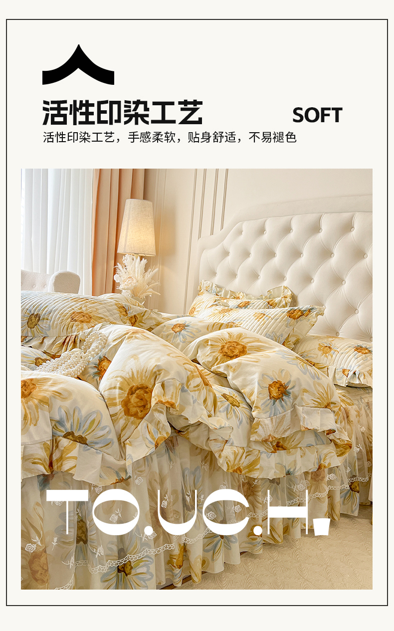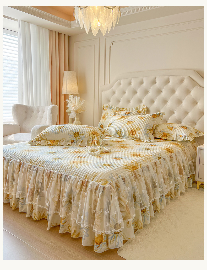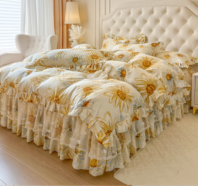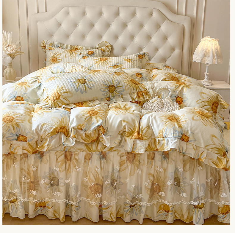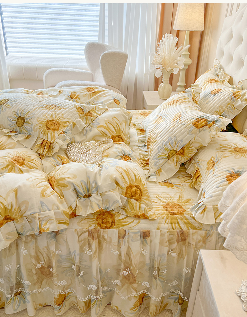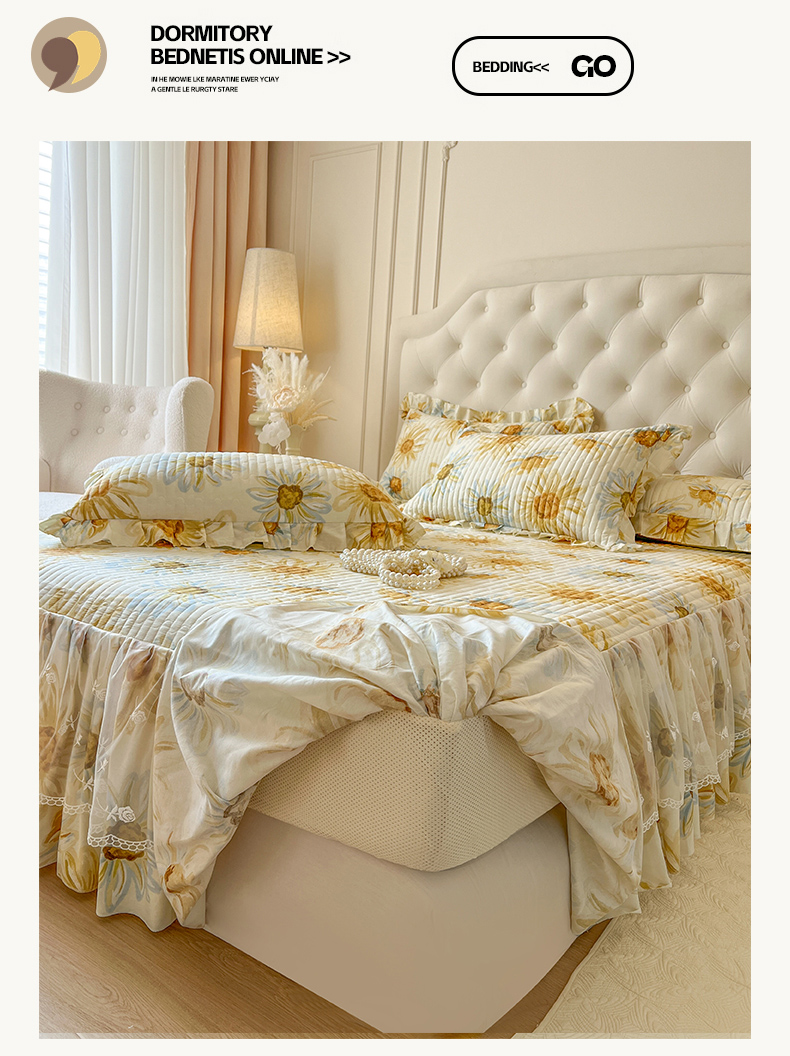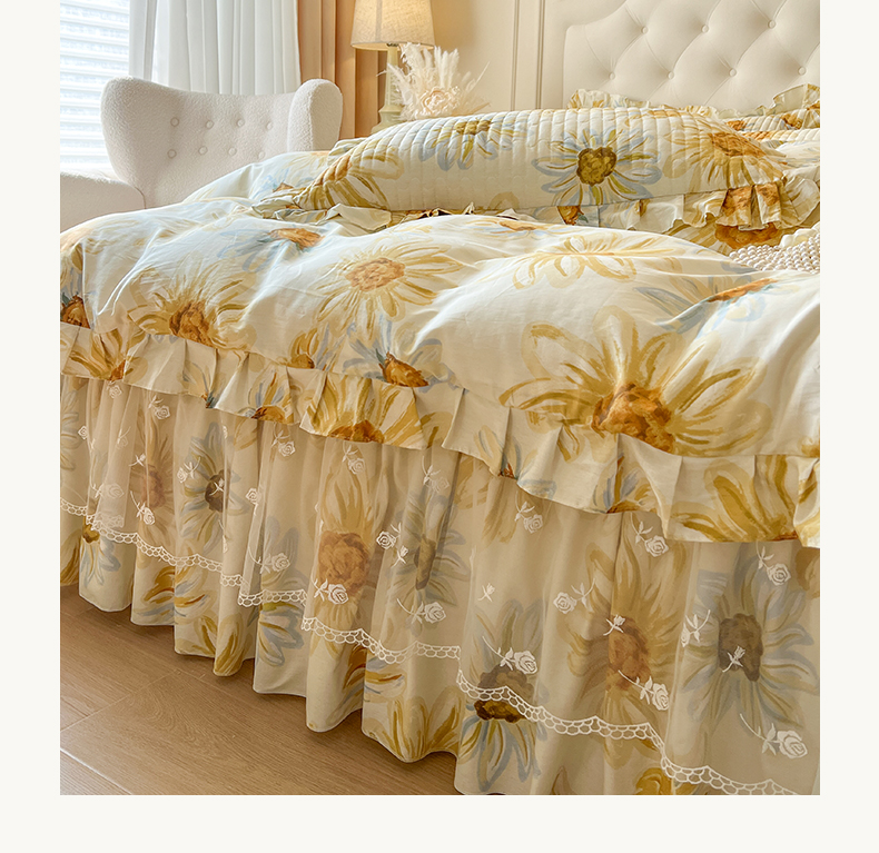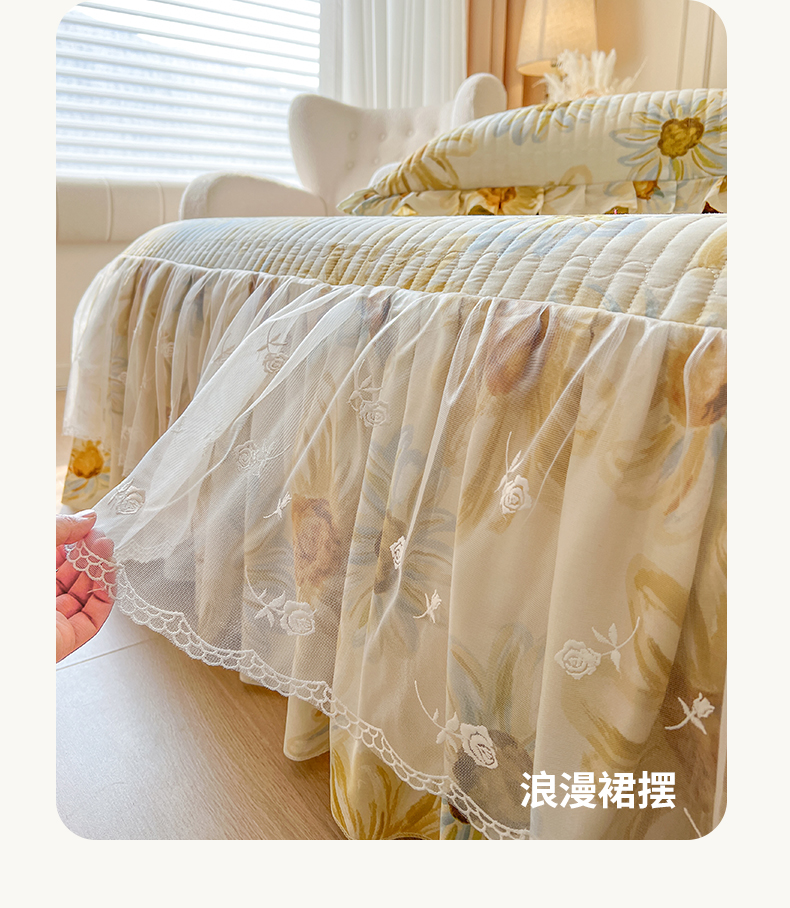 当前位置: 91家纺网 > 商品网购 > 床品套件 > 四件套 > 全棉普通四件套 > 恋尚 2025新款全棉纯棉蕾丝印花床笠裙四件套 向朵