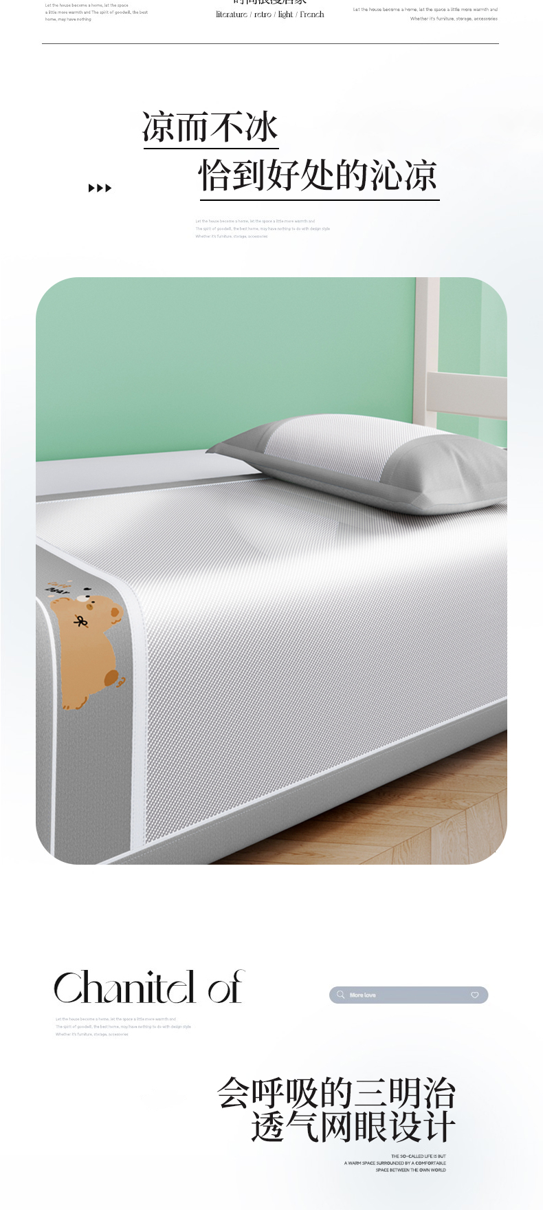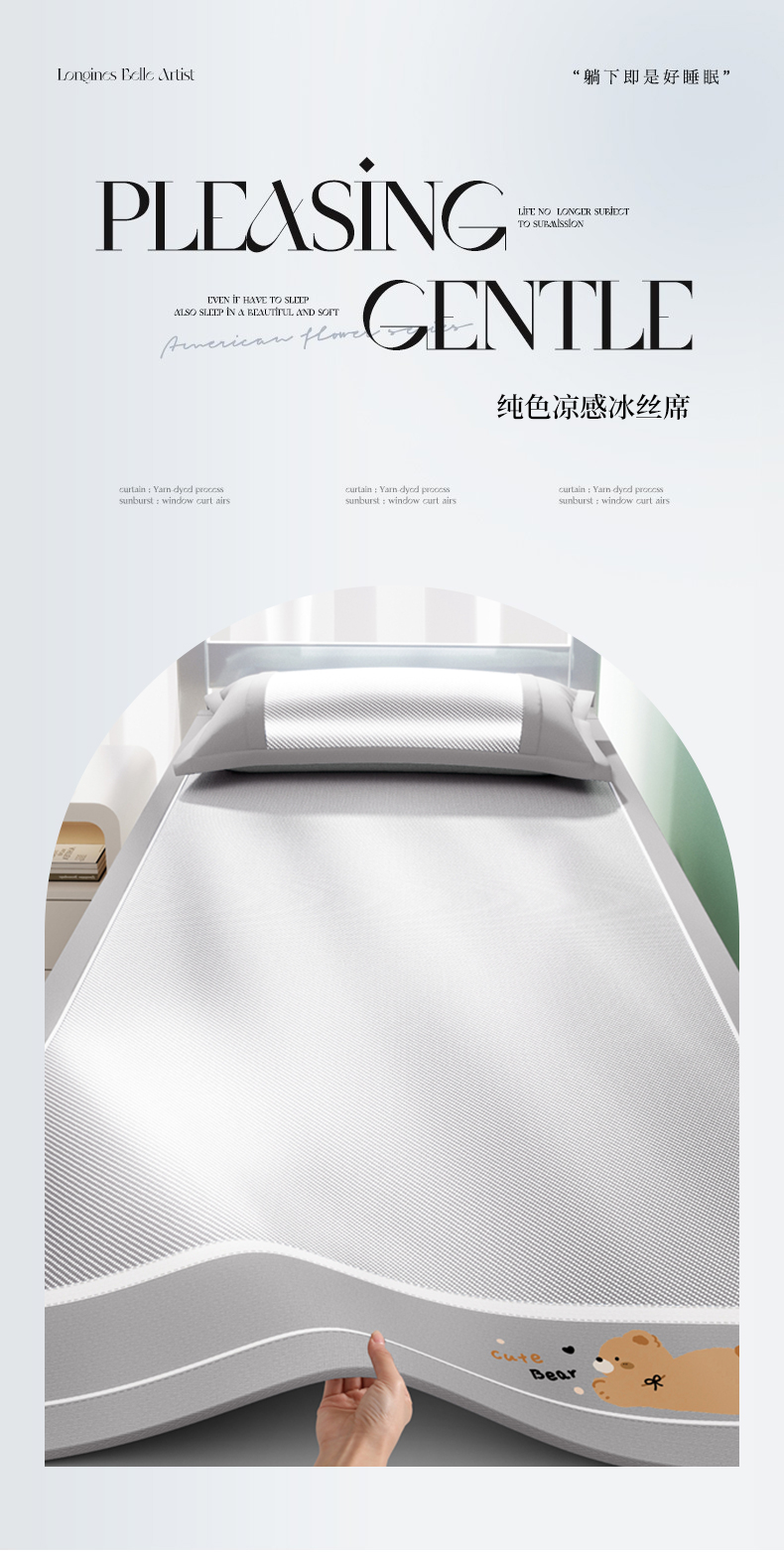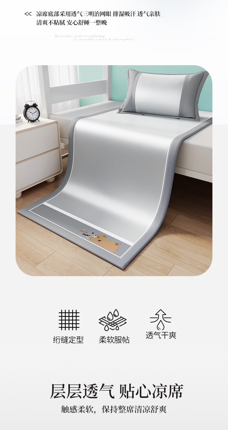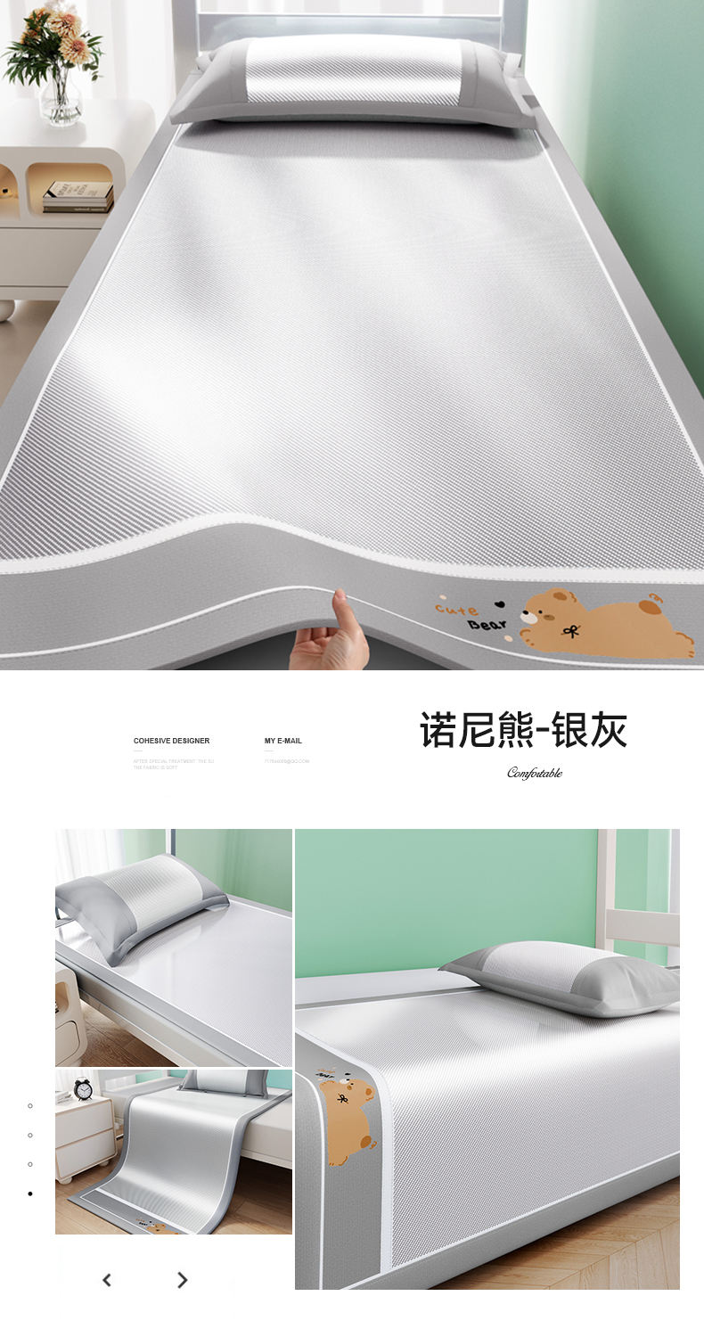 商品名称:川悦生活 2025新款纯色凉感冰丝席-小床 诺尼熊-银灰