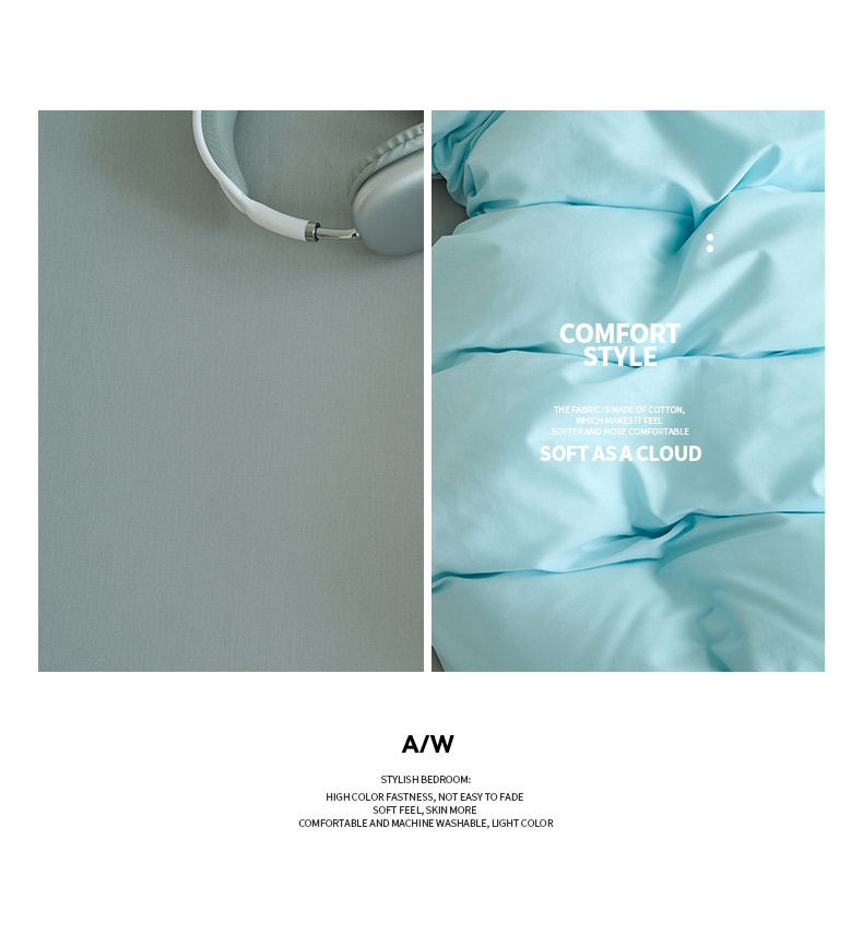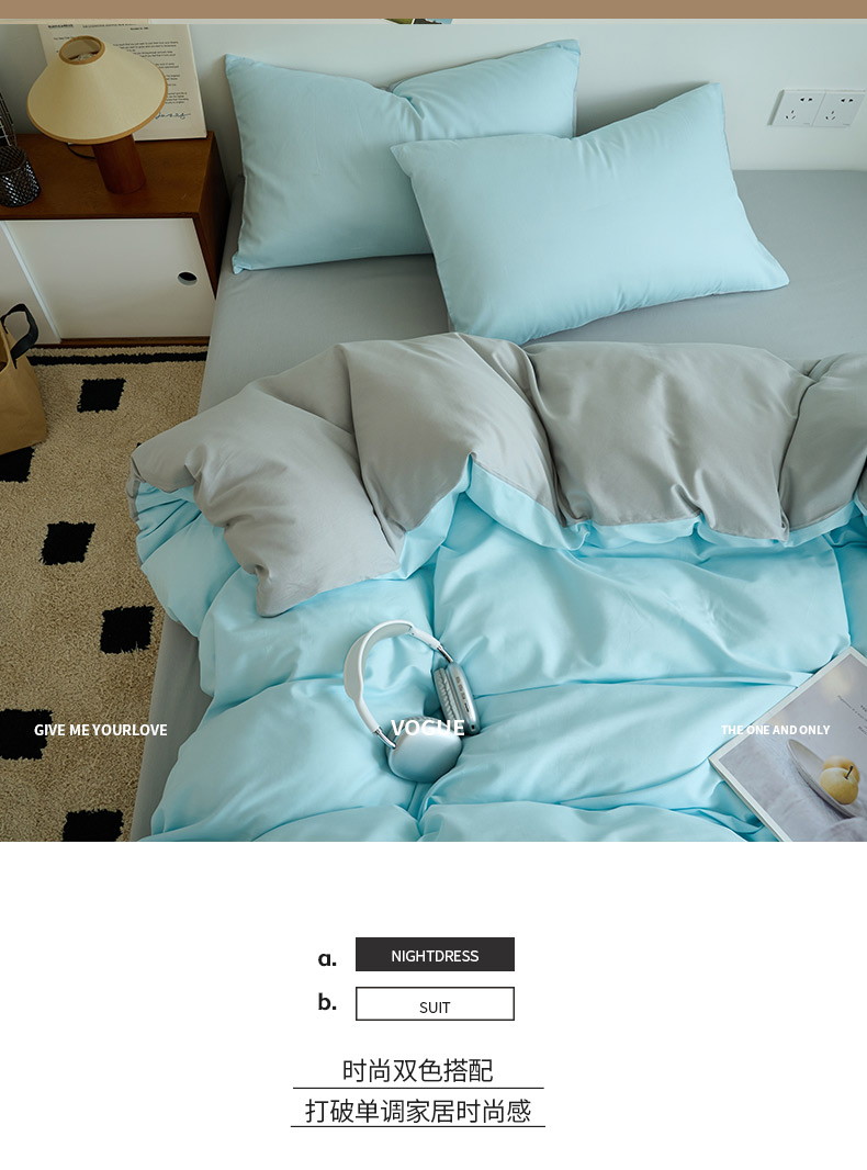 商品名称:鑫琪莱家纺 2025双拼色水洗棉四件套浅蓝浅灰
