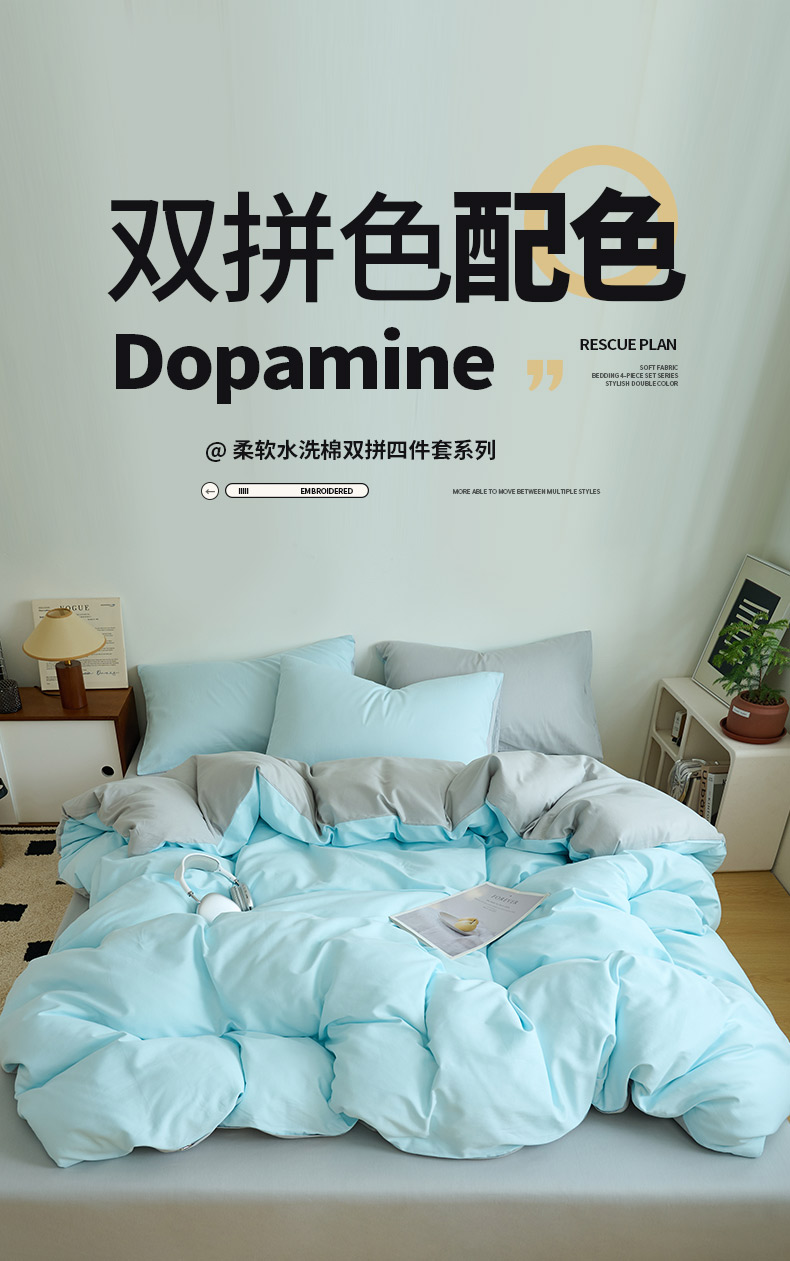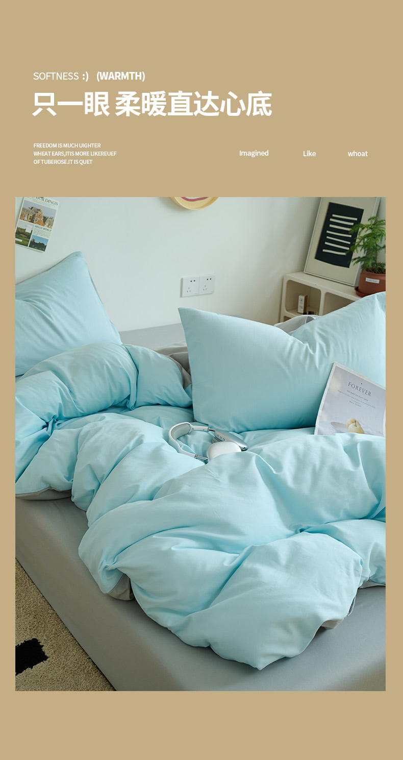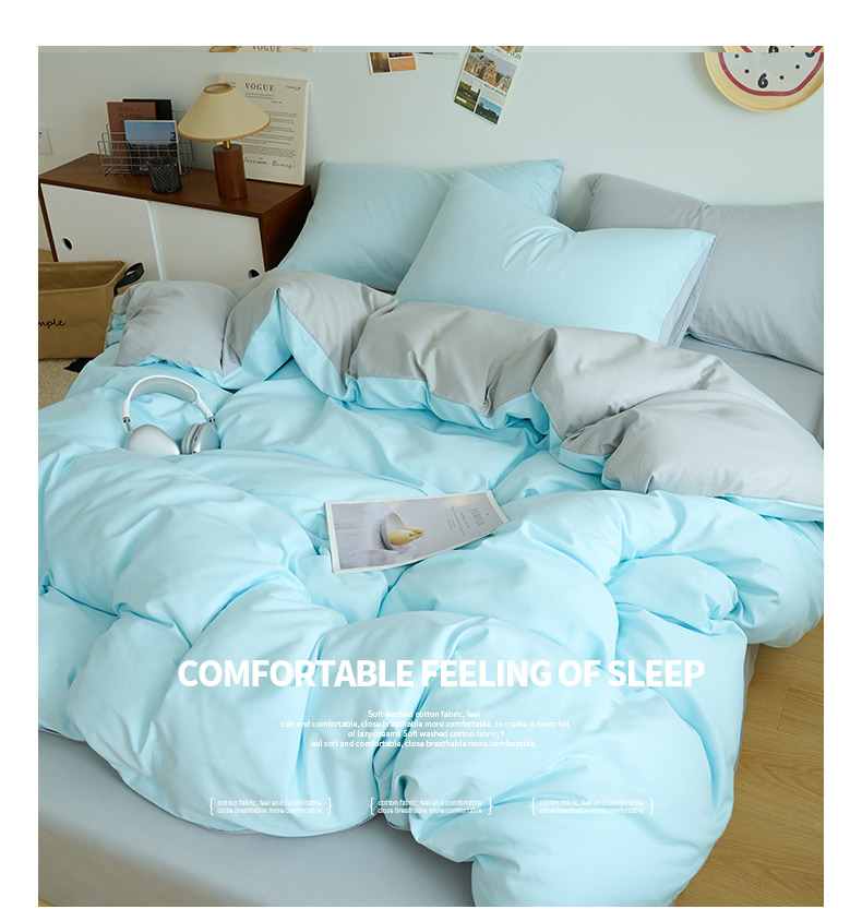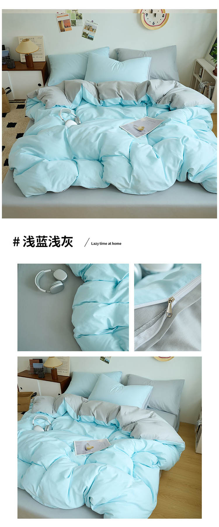 鑫琪莱家纺 2025双拼色水洗棉四件套浅蓝浅灰