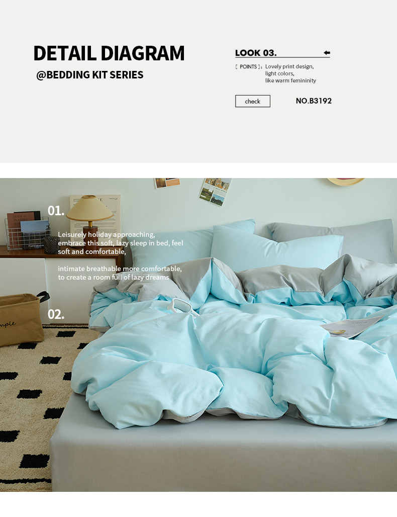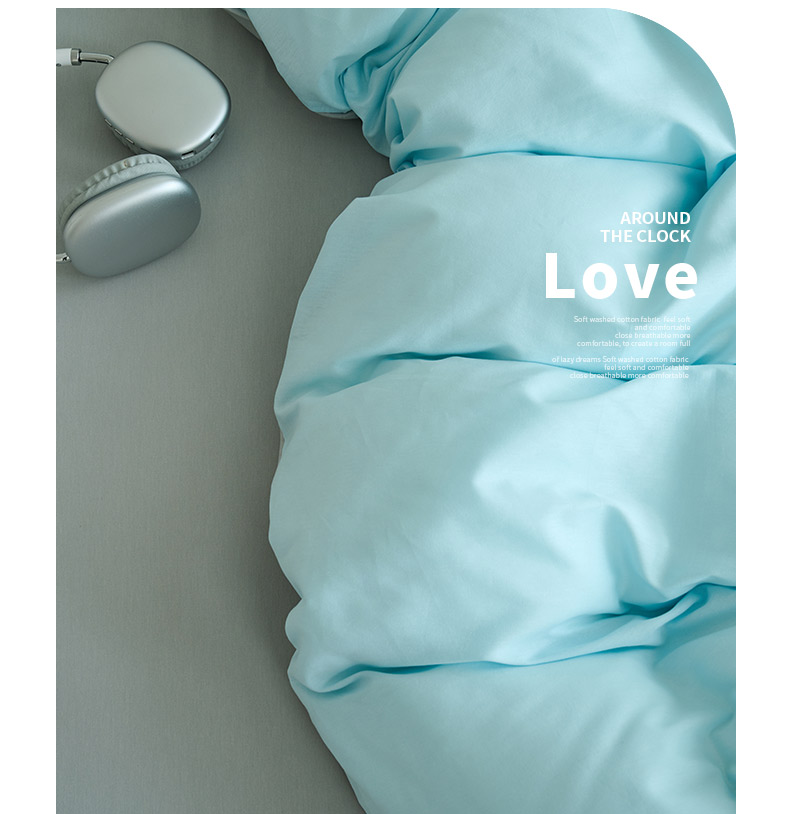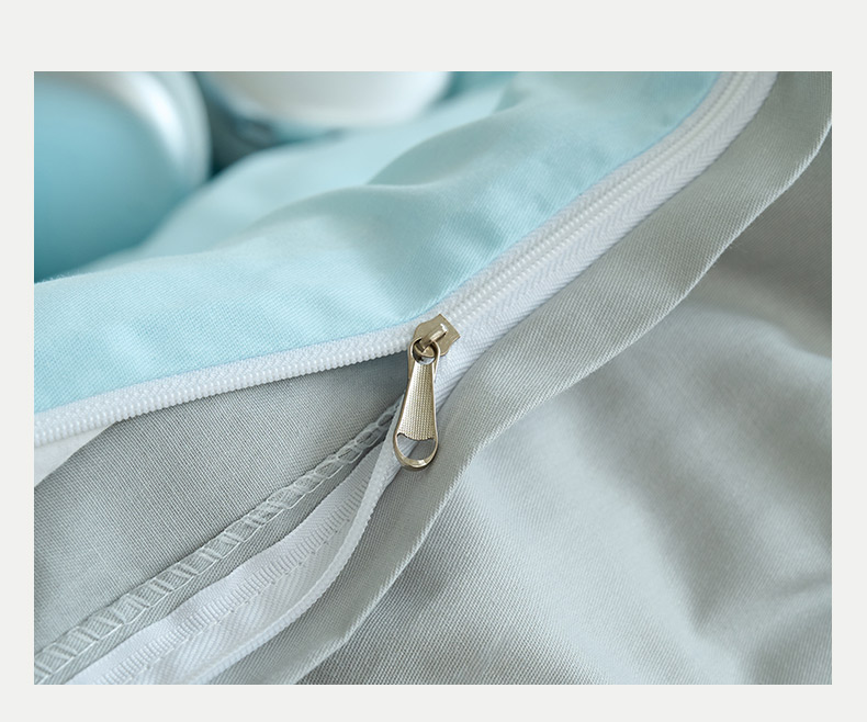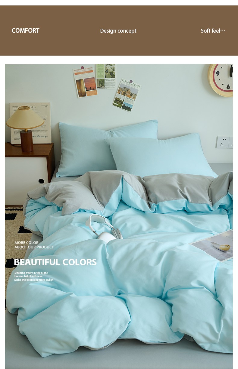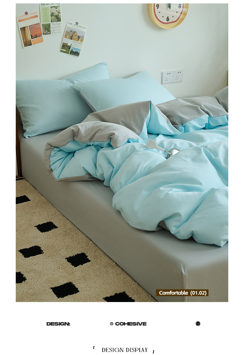 鑫琪莱家纺 2025双拼色水洗棉四件套浅蓝浅灰