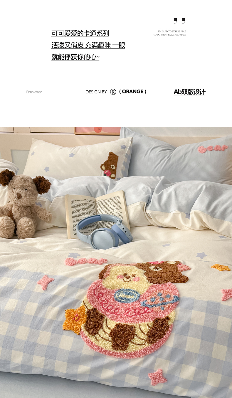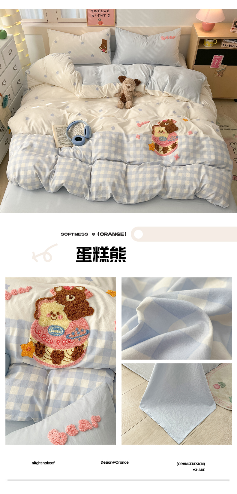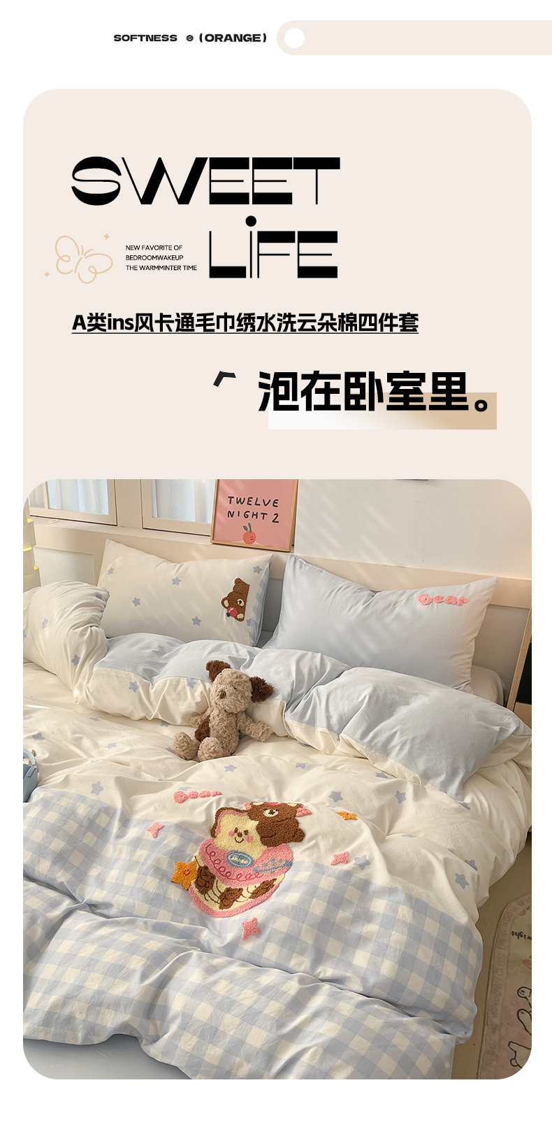 商品名称:如一 2025新款A类ins风卡通毛巾绣水洗棉四件套 蛋糕熊