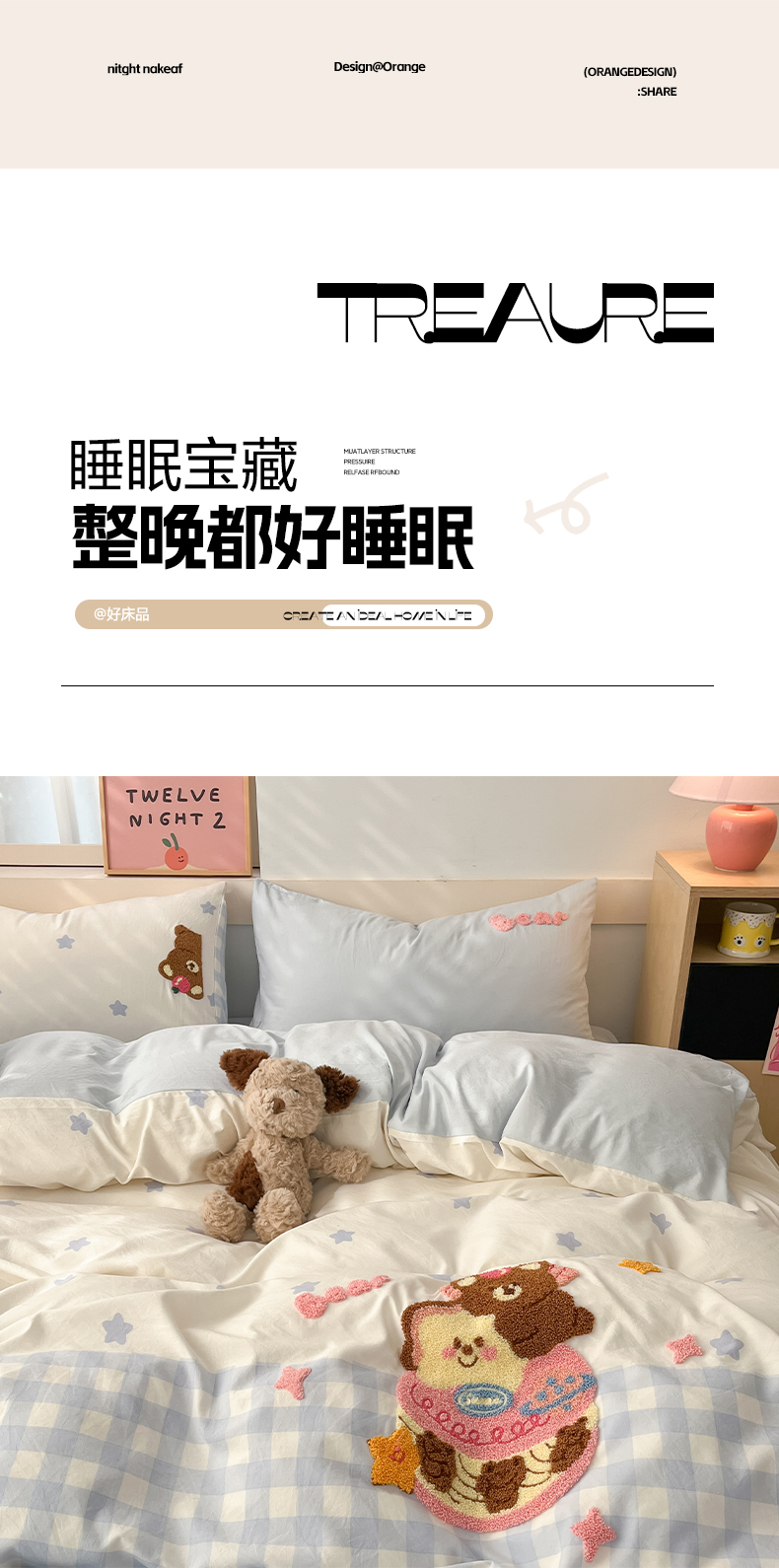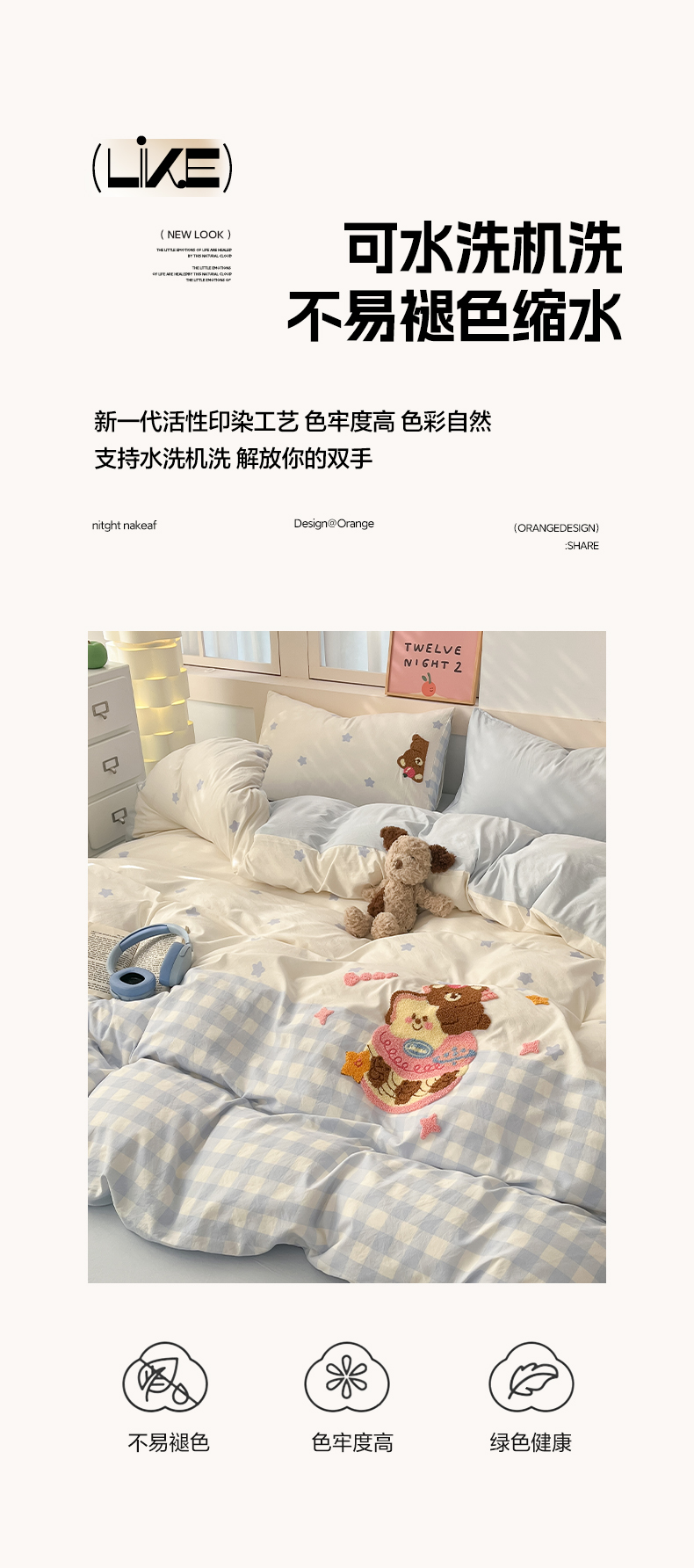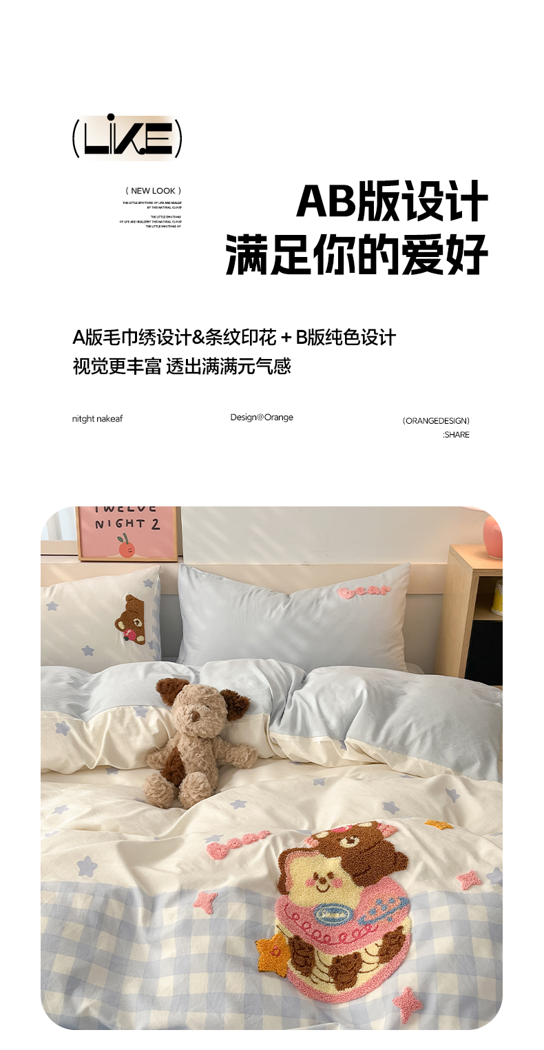 商品名称:如一 2025新款A类ins风卡通毛巾绣水洗棉四件套 蛋糕熊