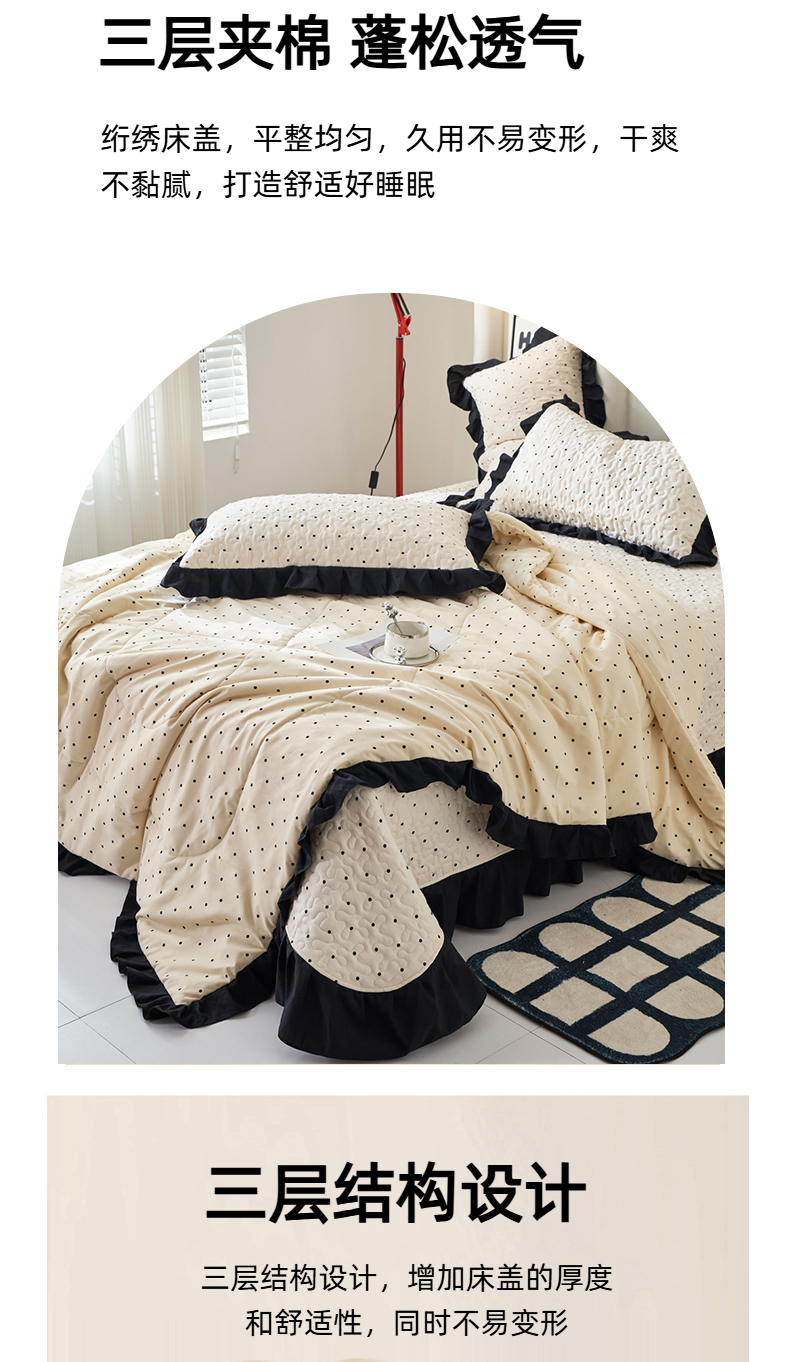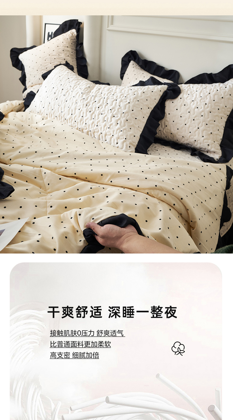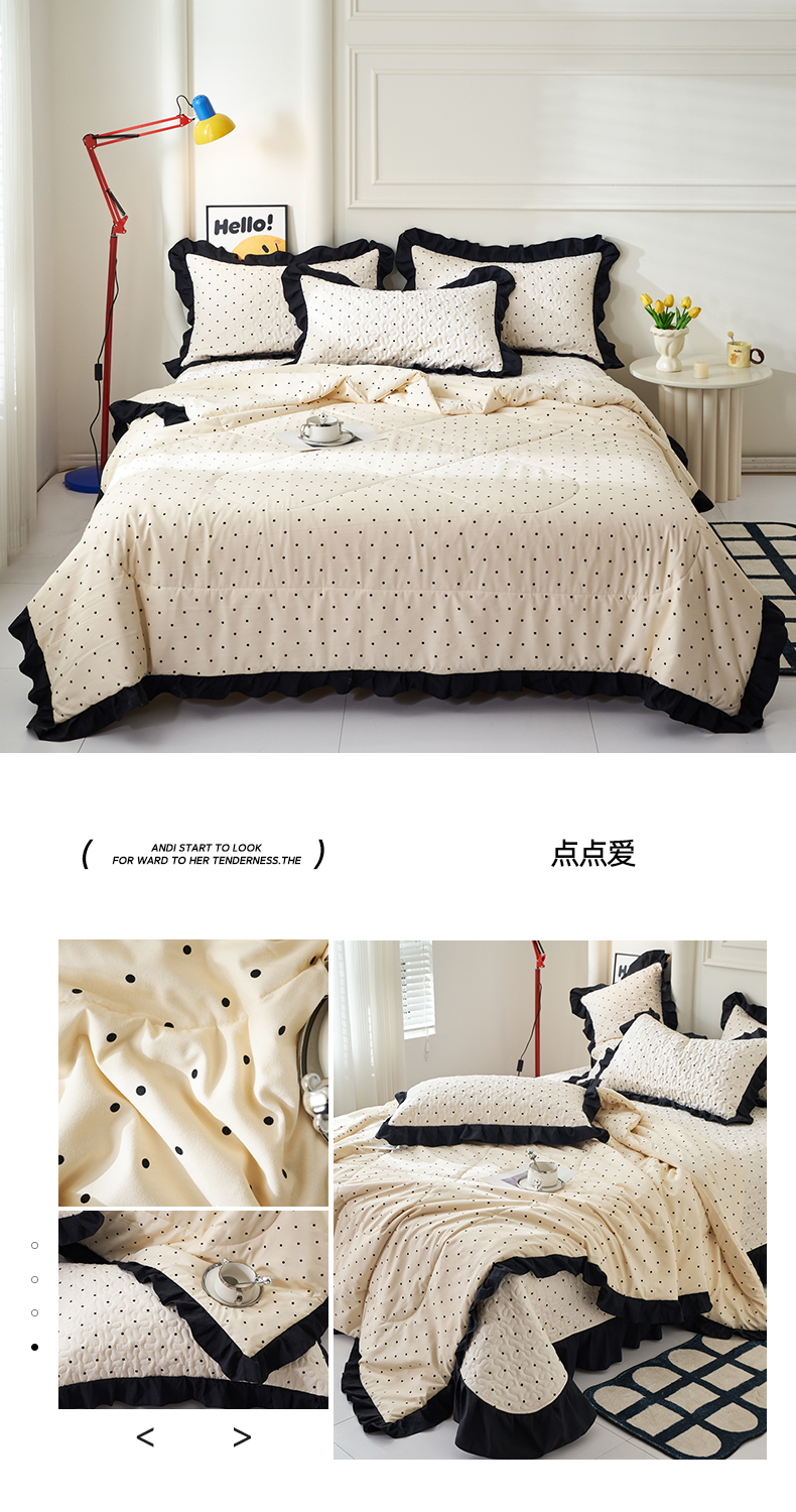 商品名称:蝶帕家纺 2025新款法式赫本风韩版花边床盖款夏被四件套 点点爱