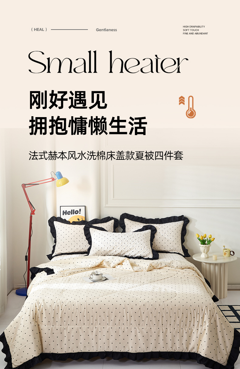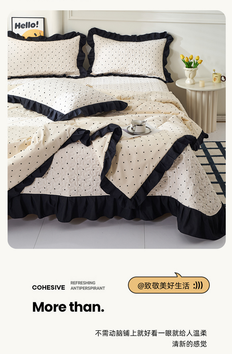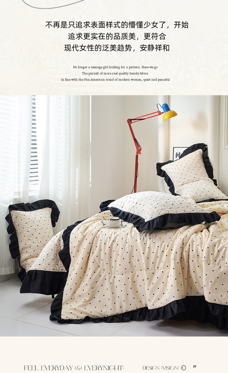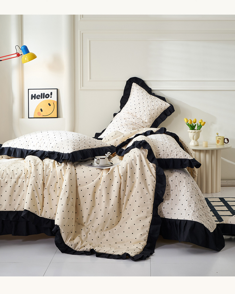 商品名称:蝶帕家纺 2025新款法式赫本风韩版花边床盖款夏被四件套 点点爱