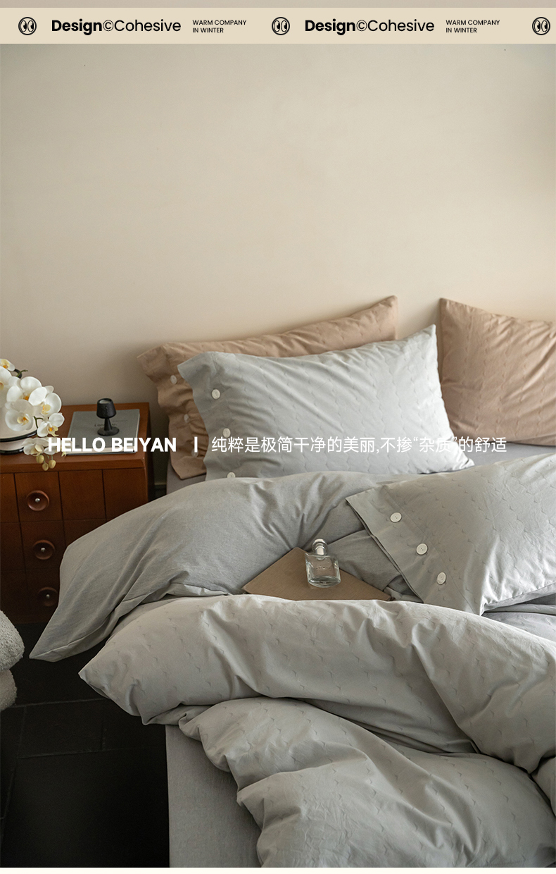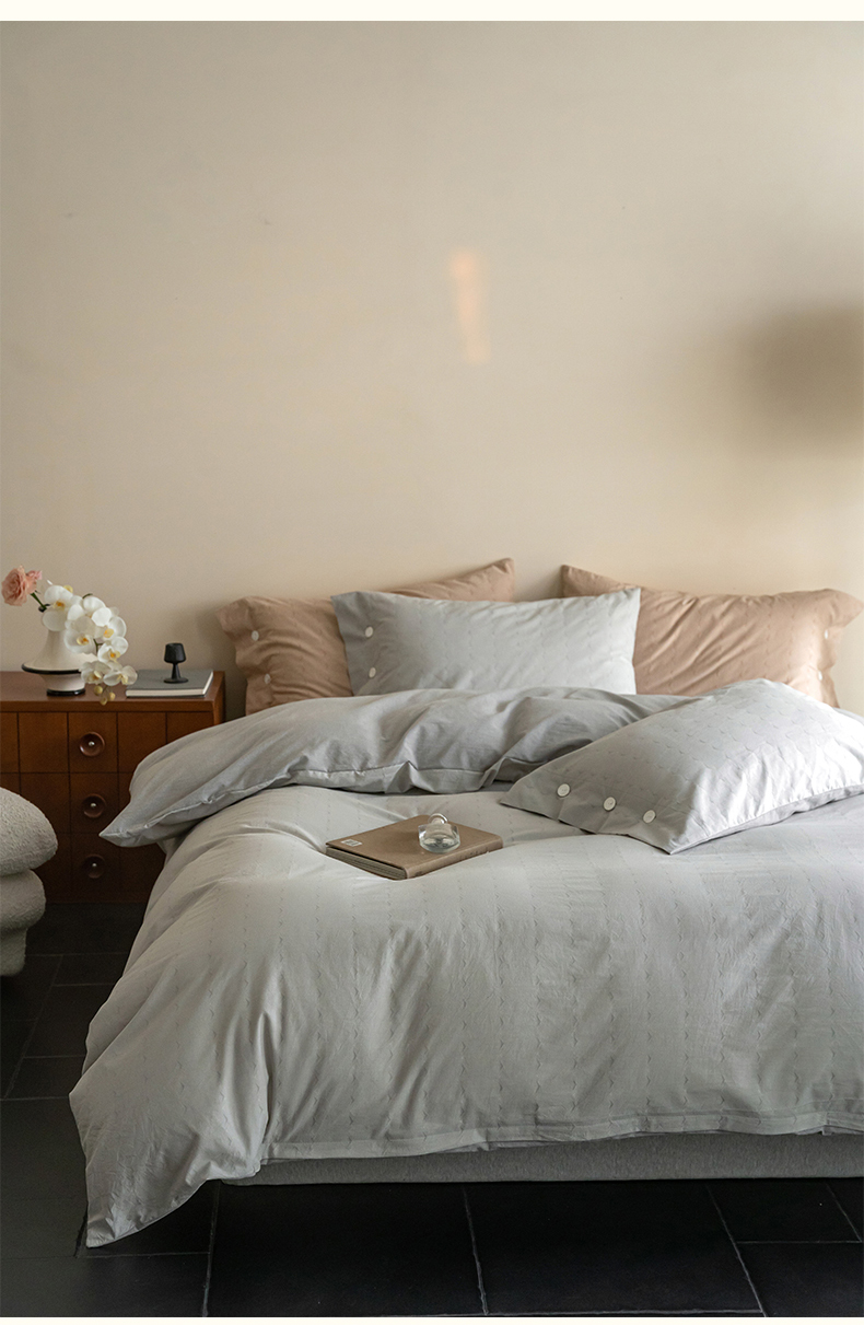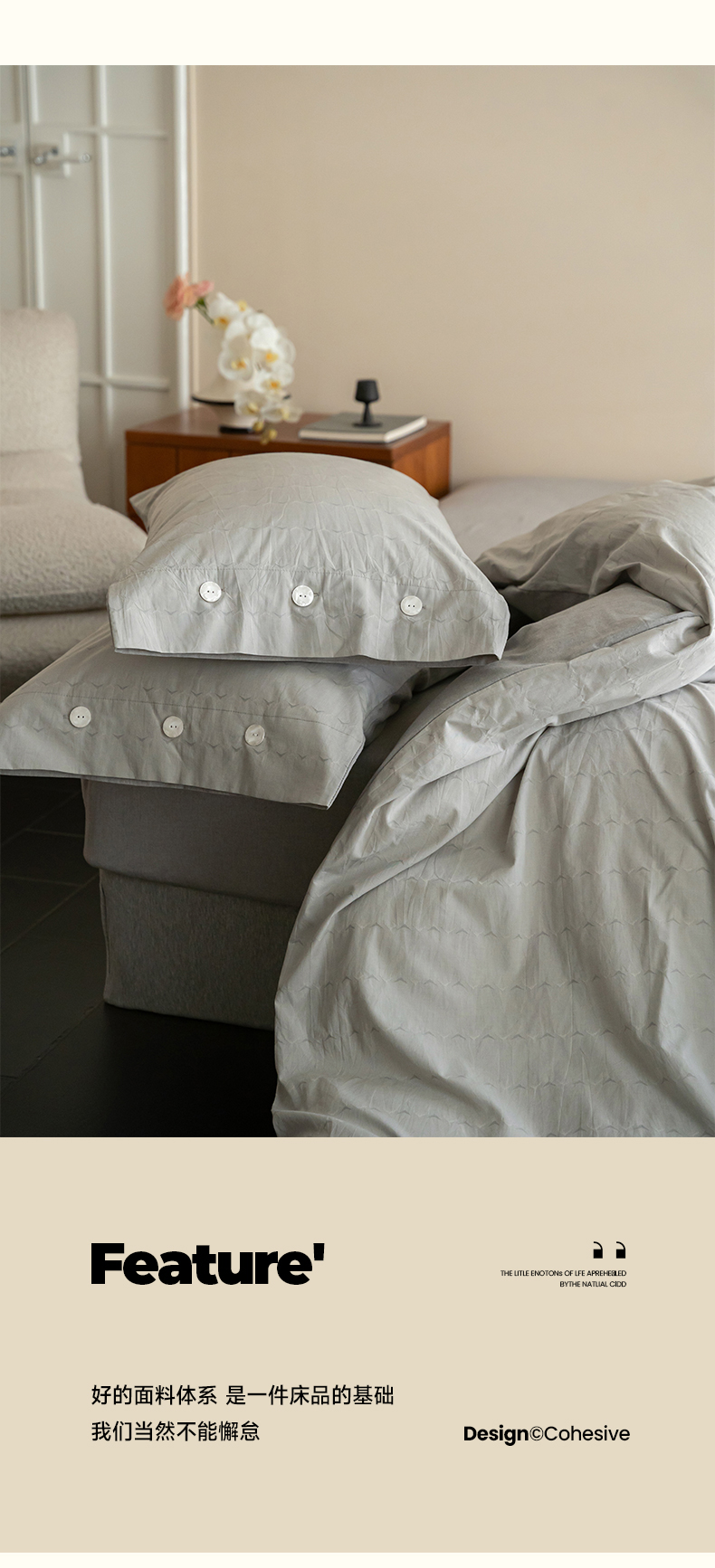 当前位置: 91家纺网 > 商品网购 > 床品套件 > 四件套 > 全棉普通四件套 > 华超针织 2025新款全棉纯棉水洗提花四件套 -漾影 风格一 漾影浅灰