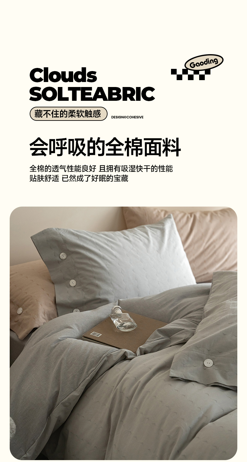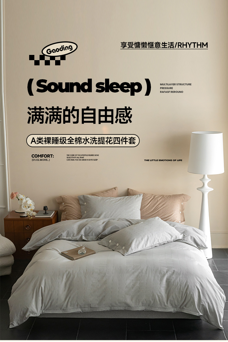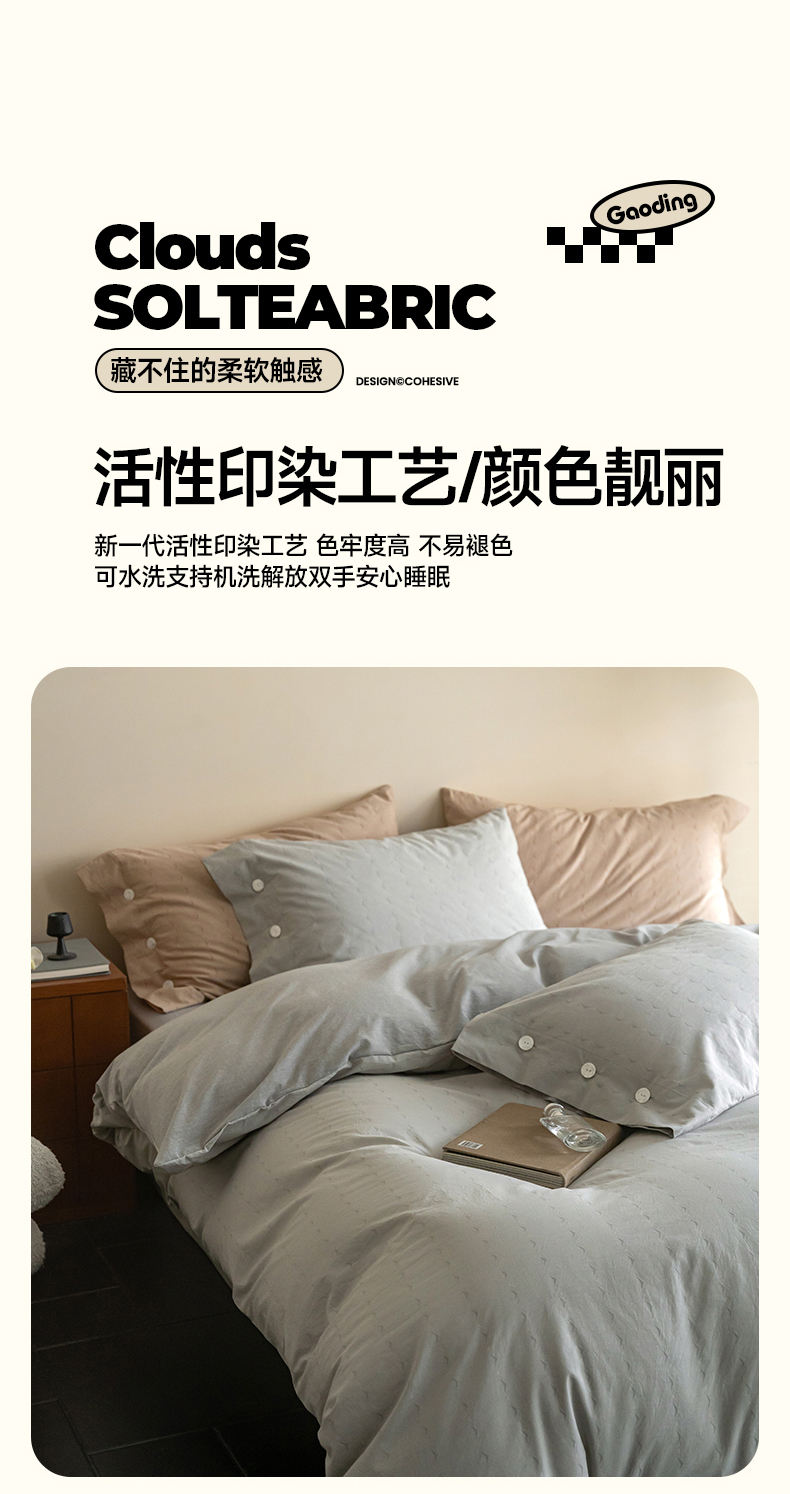 当前位置: 91家纺网 > 商品网购 > 床品套件 > 四件套 > 全棉普通四件套 > 华超针织 2025新款全棉纯棉水洗提花四件套 -漾影 风格一 漾影浅灰