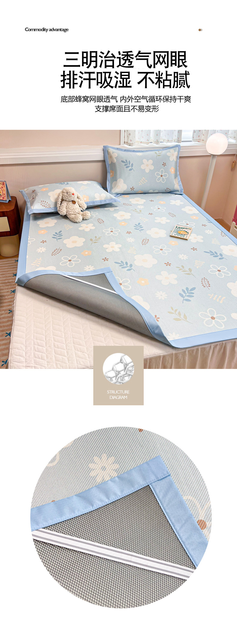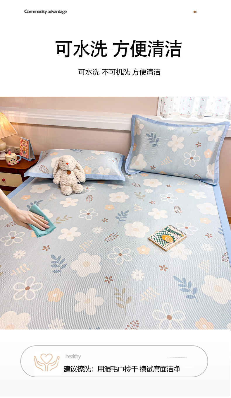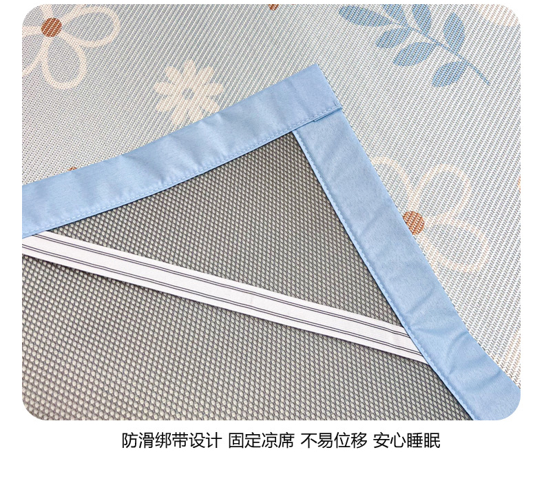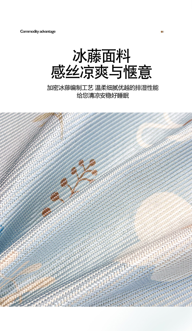 商品名称:慕尚家纺 2025新款数码印花床席床笠款冰藤席 床笠款-花朵蓝