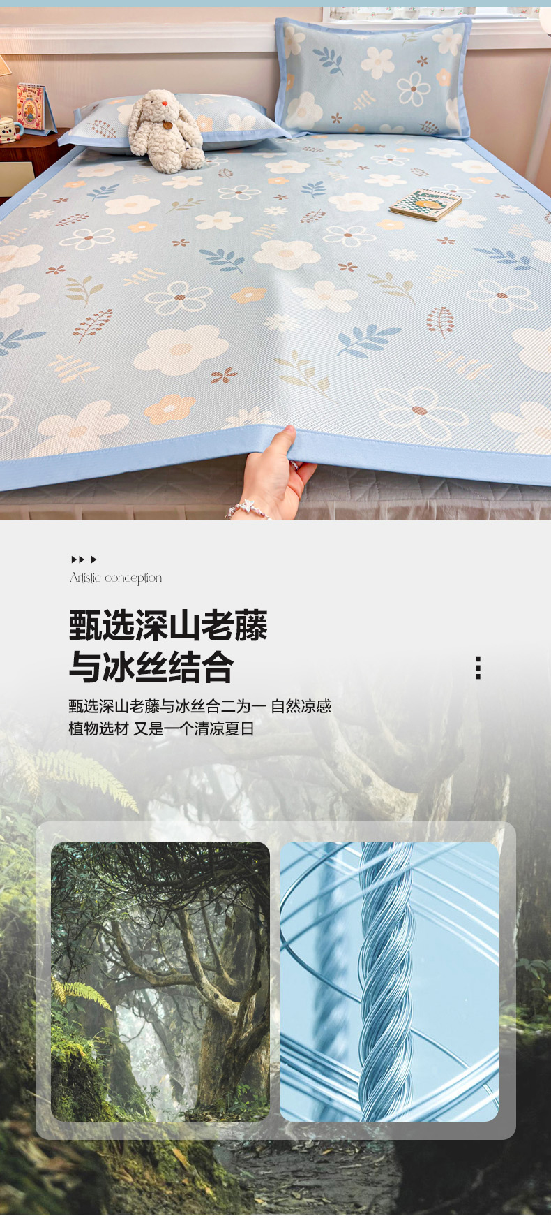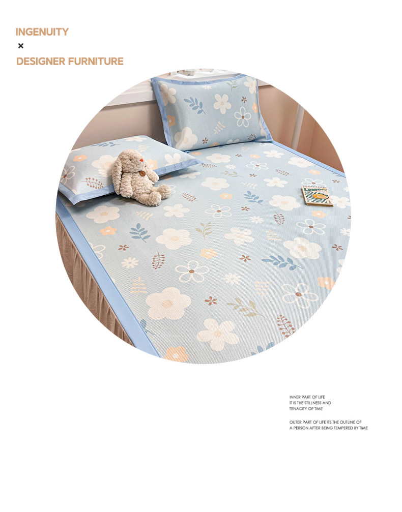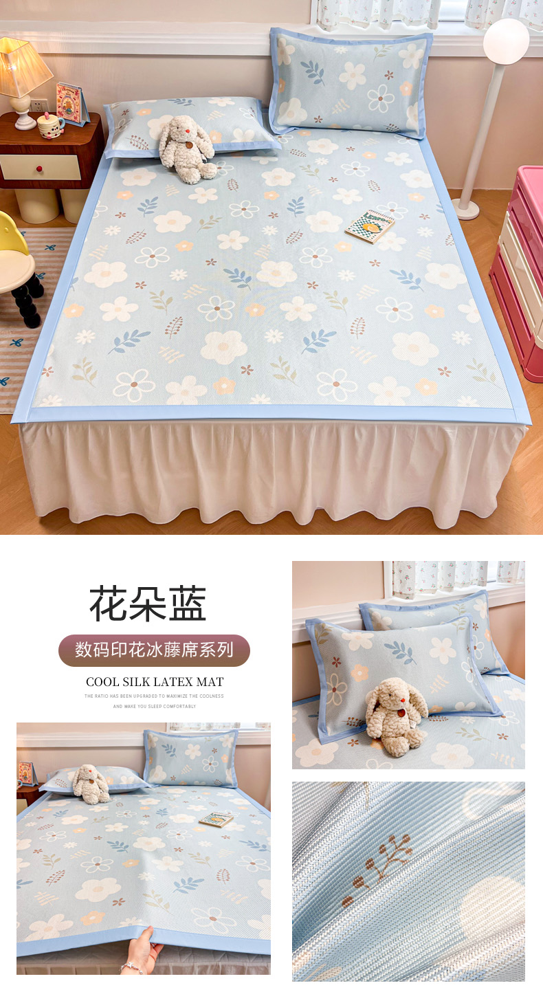 慕尚家纺 2025新款数码印花床席床笠款冰藤席 床笠款-花朵蓝