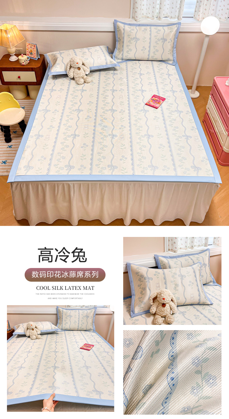 慕尚家纺 2025新款数码印花床席床笠款冰藤席 床席款-高冷兔