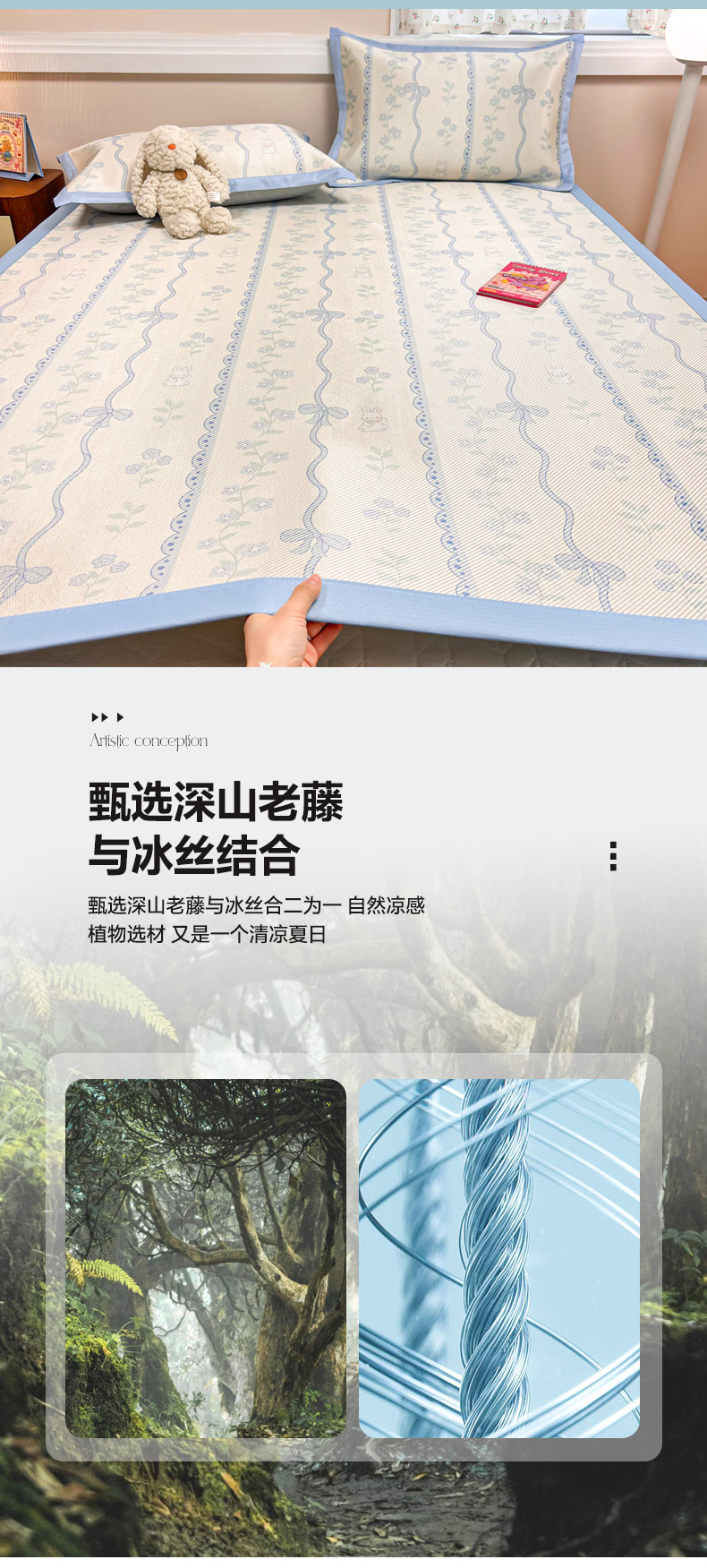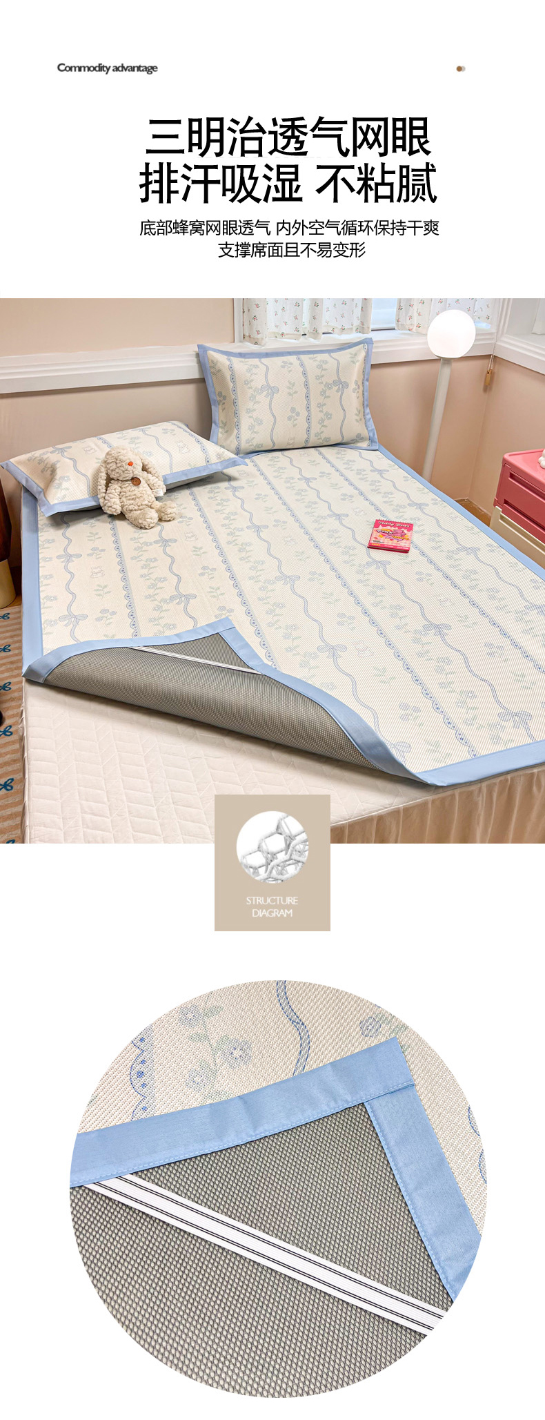 商品名称:慕尚家纺 2025新款数码印花床席床笠款冰藤席 床席款-高冷兔