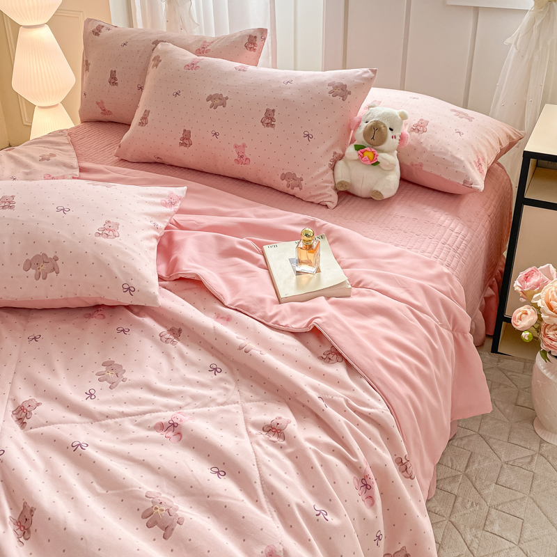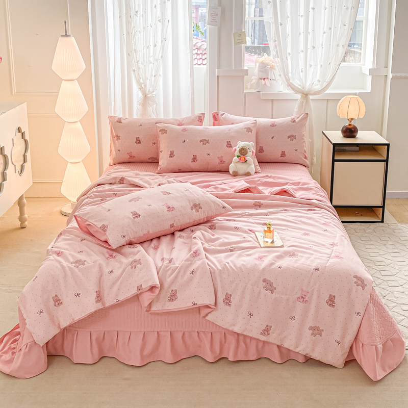 2025新款针织双层纱夏被床盖四件套单夏被单床盖单品 萌萌熊