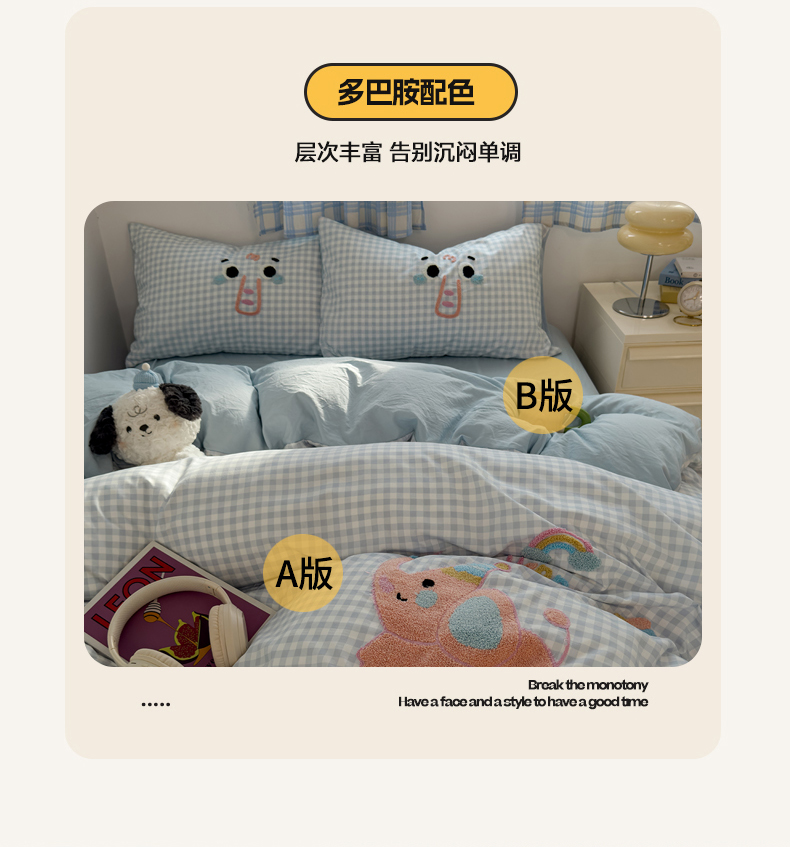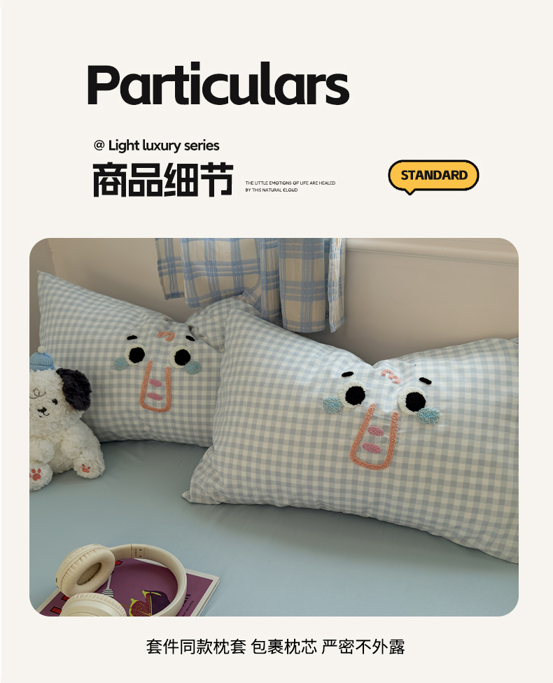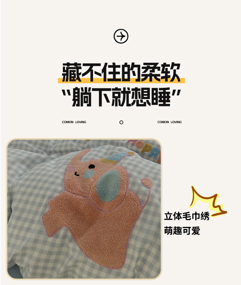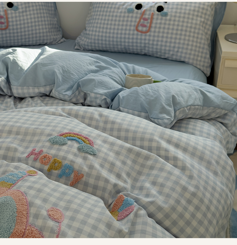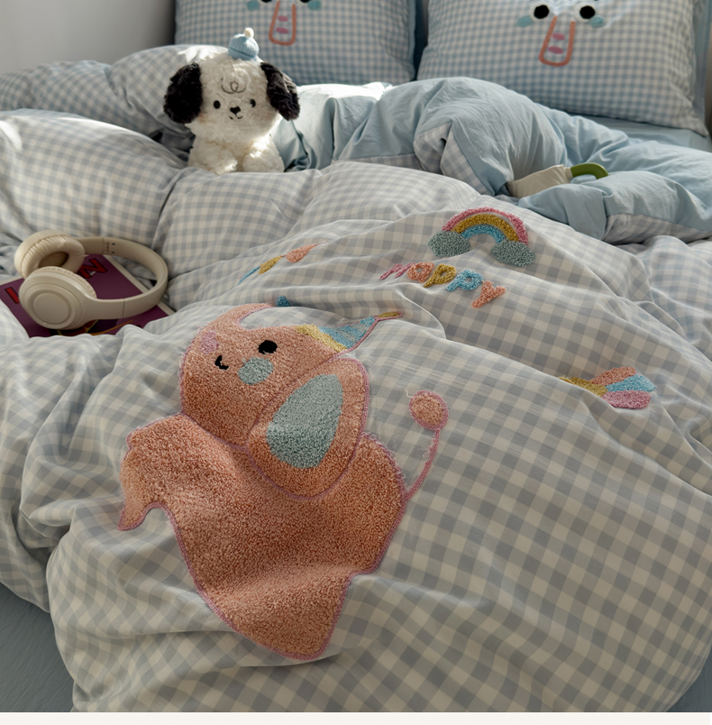 当前位置: 91家纺网 > 商品网购 > 床品套件 > 四件套 > 磨毛活性四件套 > 优兰朵 2025新款学生卡通水洗棉毛巾绣三件套床品四件套系列(提供买家秀) 快乐小飞象-蓝格