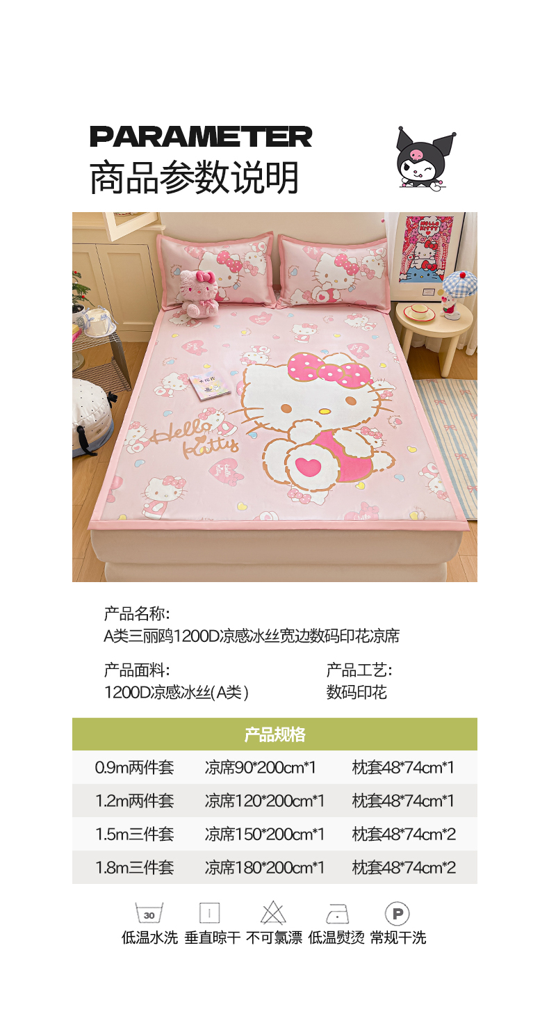 当前位置: 91家纺网 > 商品网购 > 床上用品 > 凉席 > 冰丝席 > 金爱家 2025新款A类三丽鸥授权数码印花中分子1200D凉感冰丝宽边凉感软席 冰丝席-冰淇淋库洛米