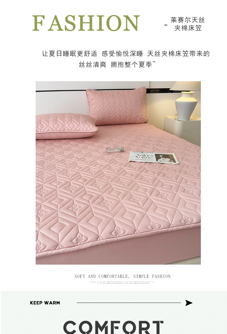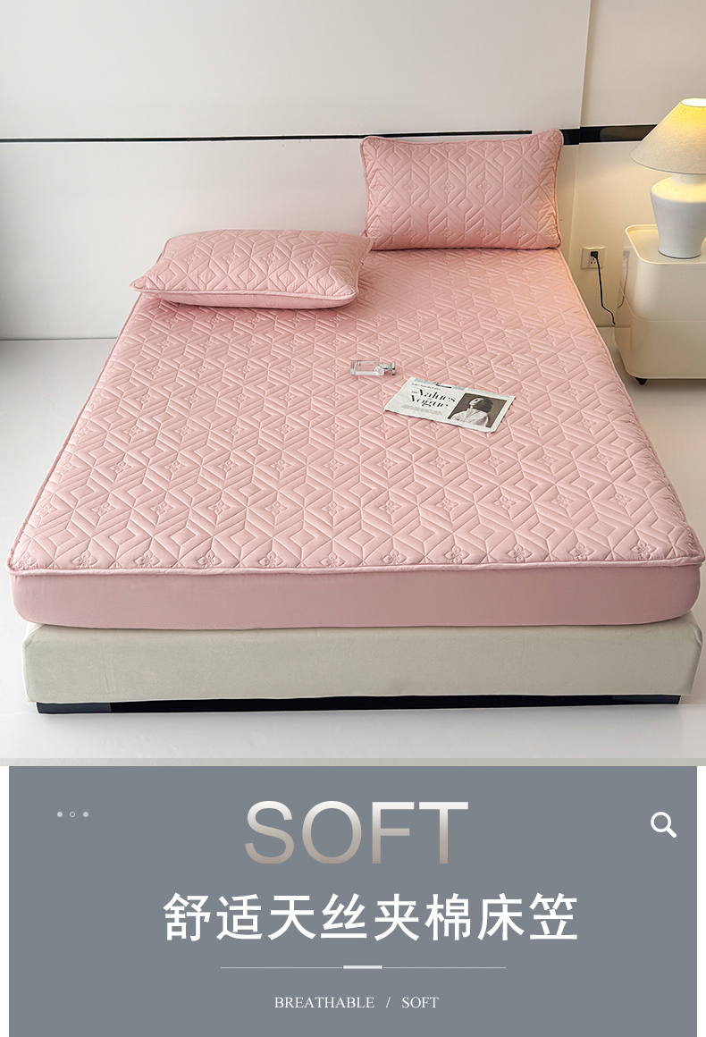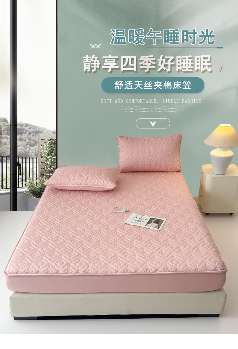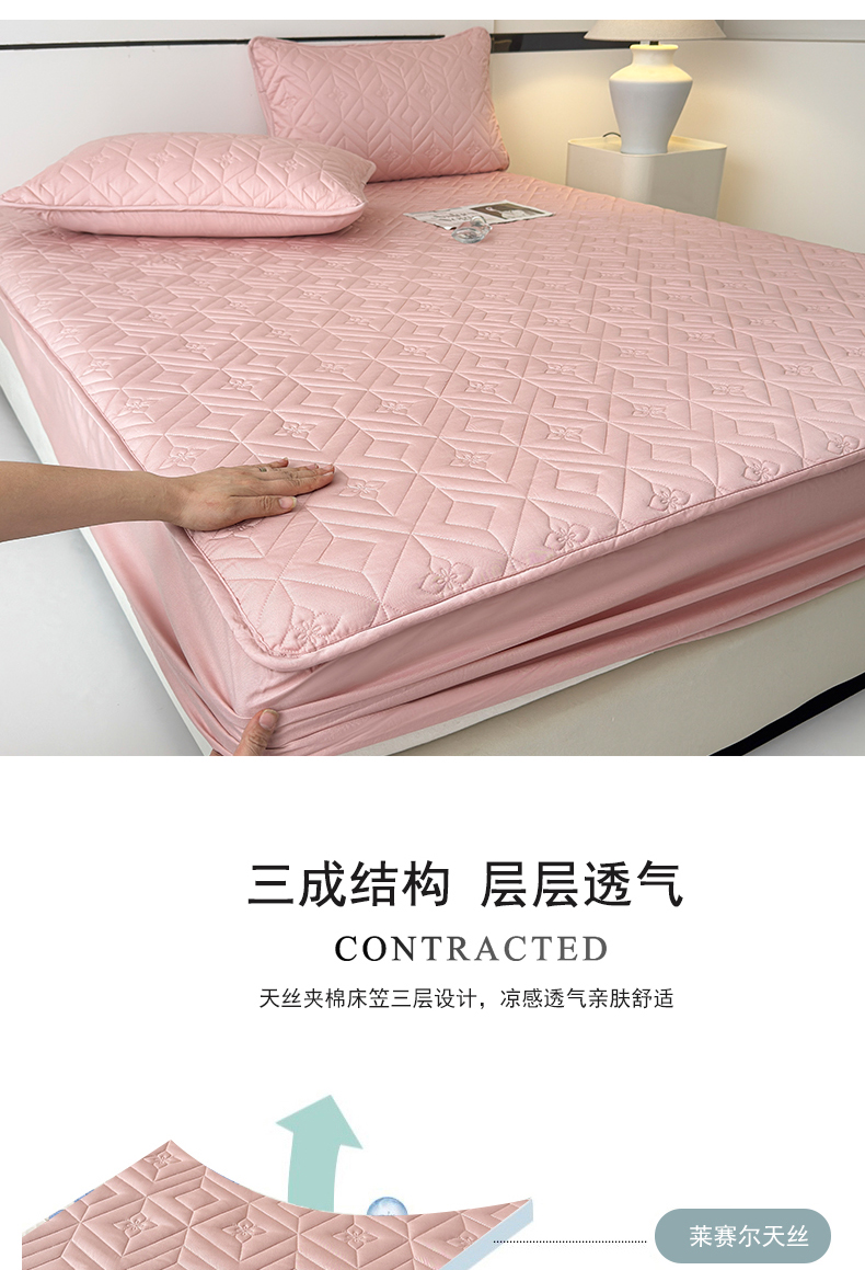 (总)云雀 2025新款舒适莱赛尔天丝夹棉床笠,菱格床笠-豆绿,菱格床笠-豆沙,菱格床笠-浅灰,菱格床笠-玉粉
