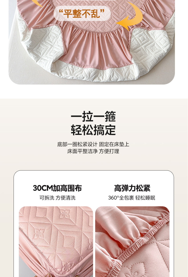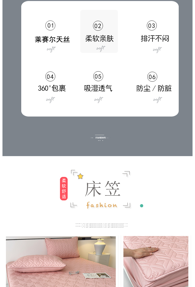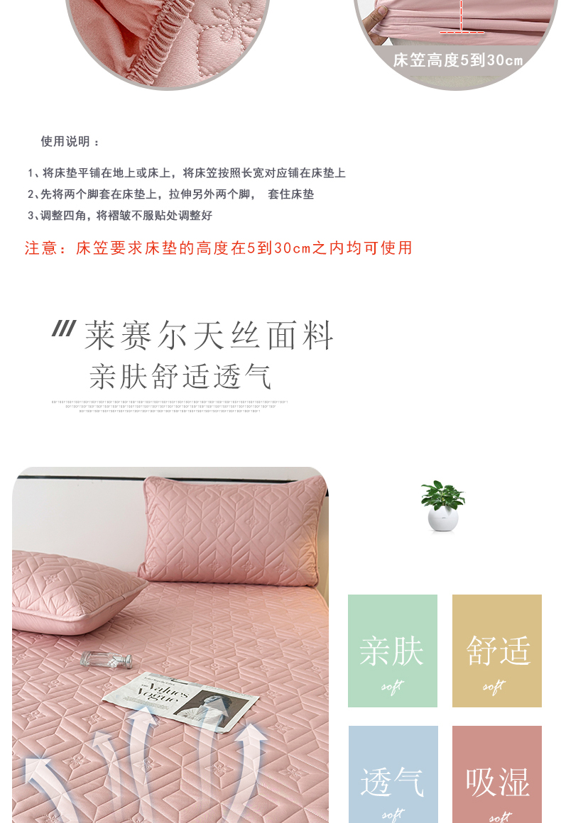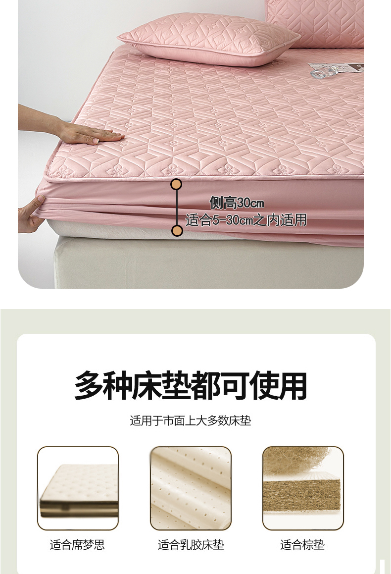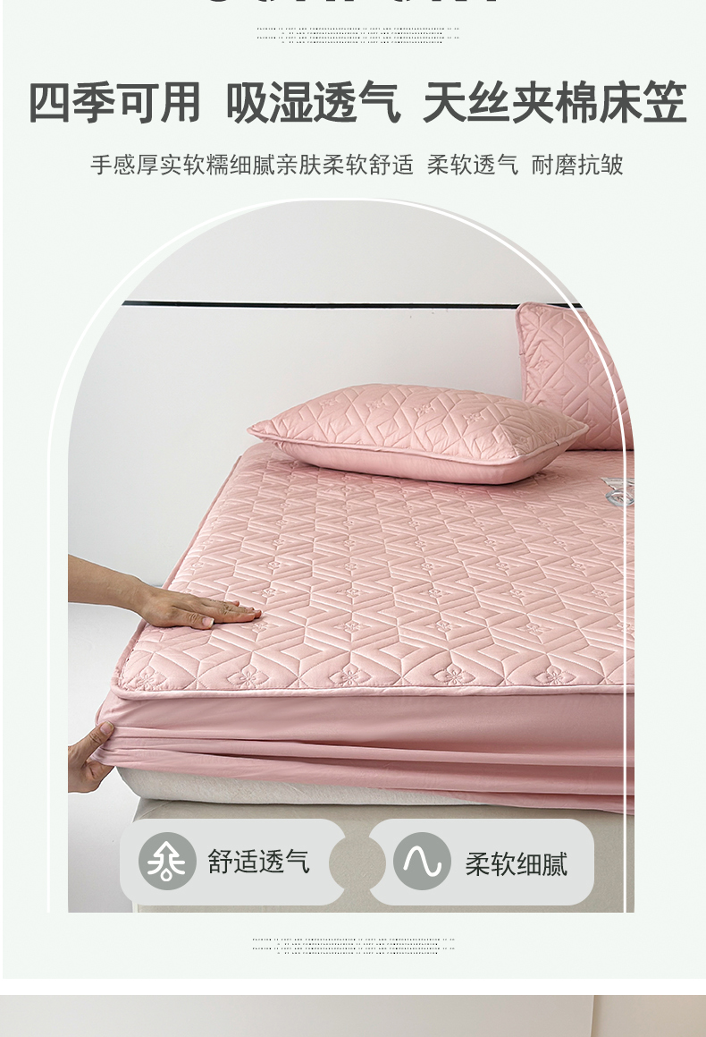 (总)云雀 2025新款舒适莱赛尔天丝夹棉床笠,菱格床笠-豆绿,菱格床笠-豆沙,菱格床笠-浅灰,菱格床笠-玉粉
