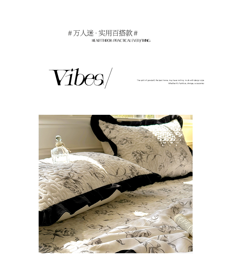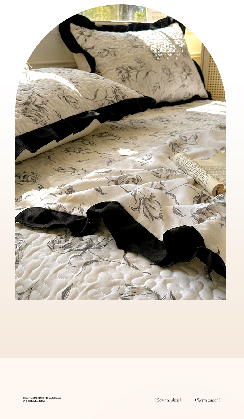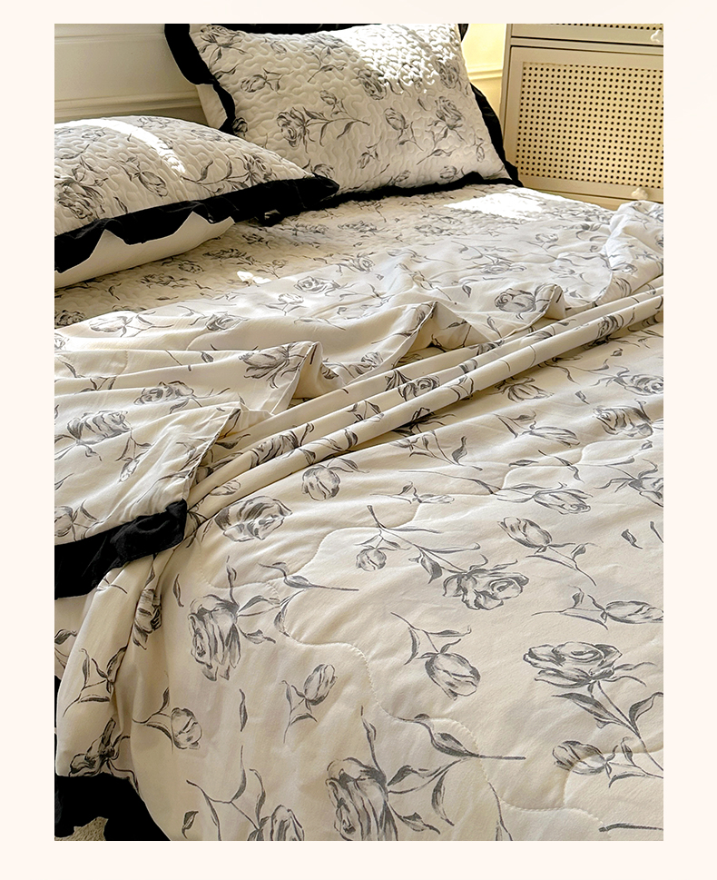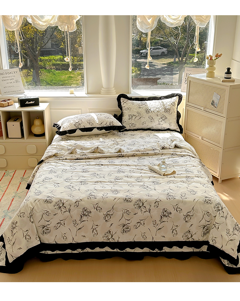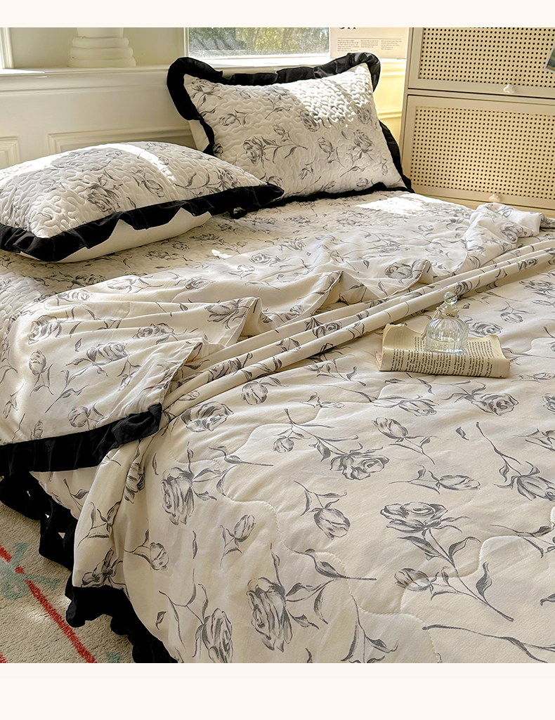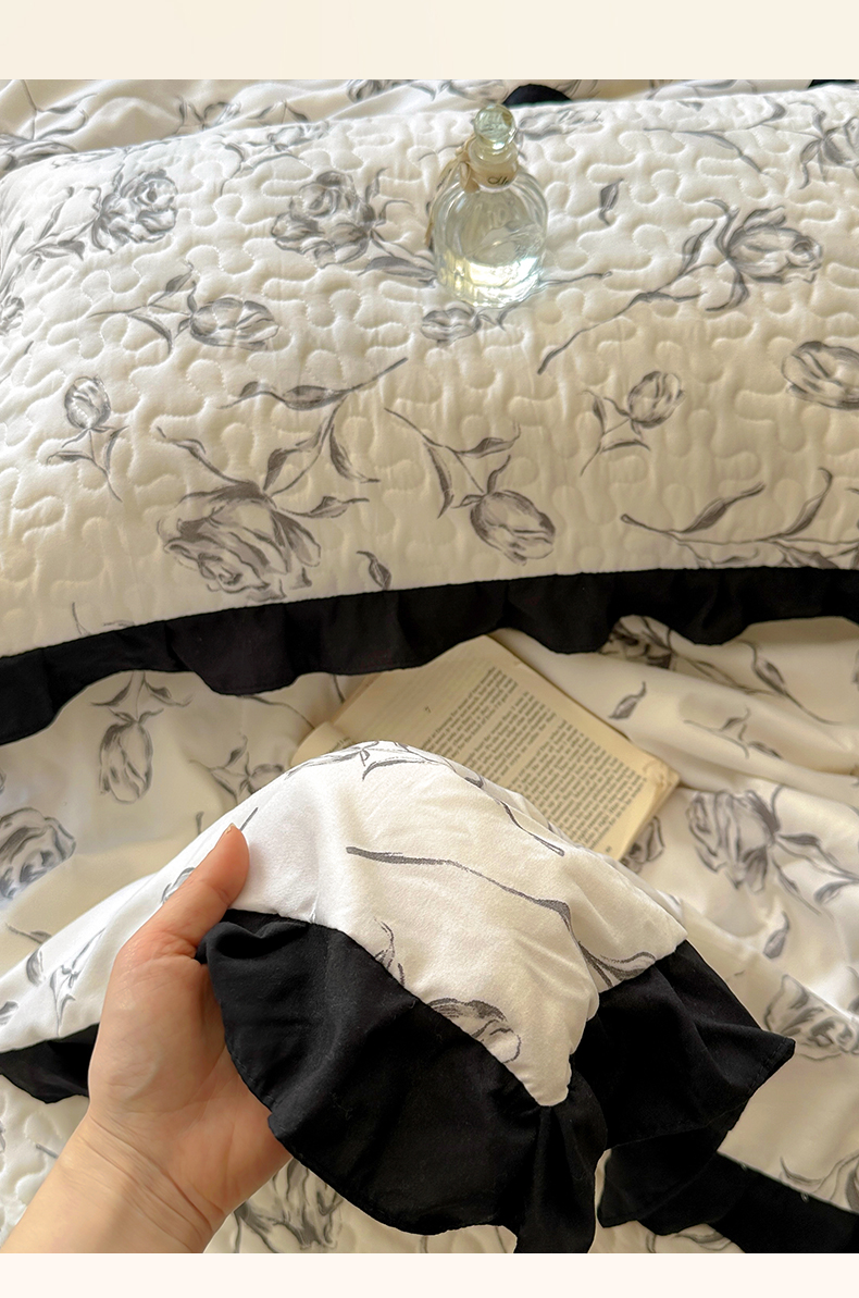 美梦家纺 2025新款水洗棉花边夹棉床盖款四件套 玫瑰花园