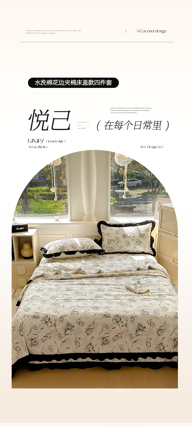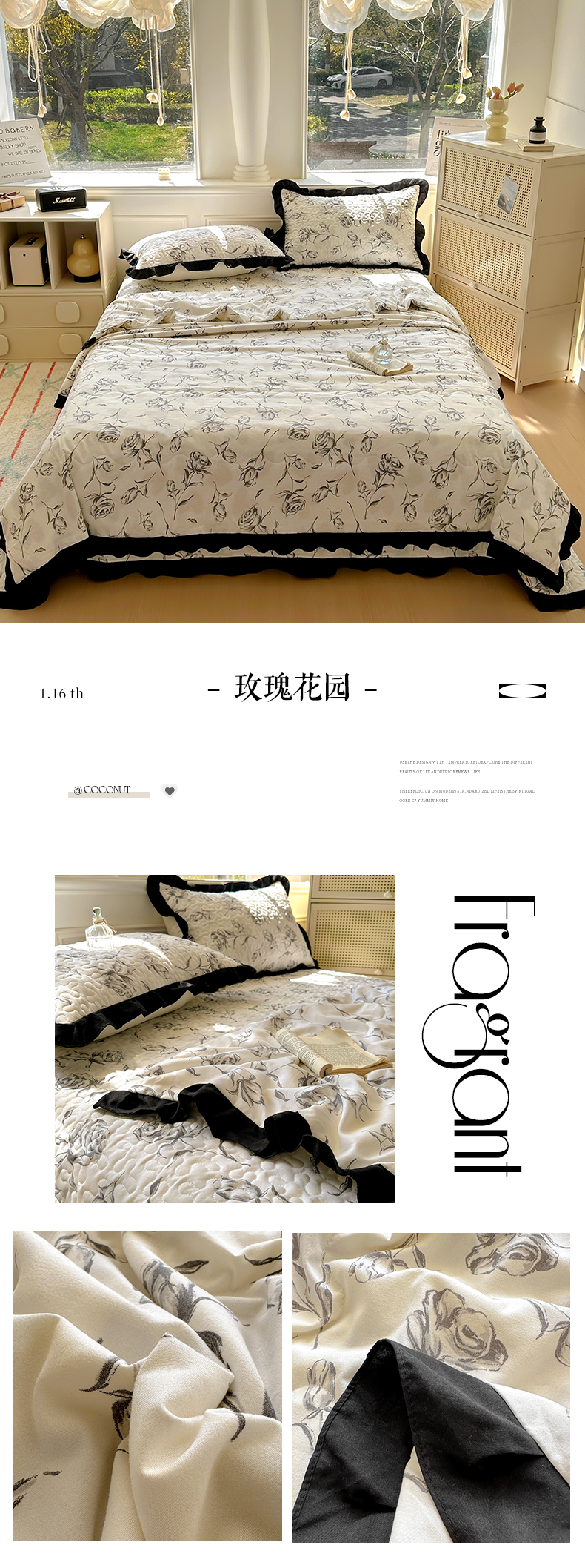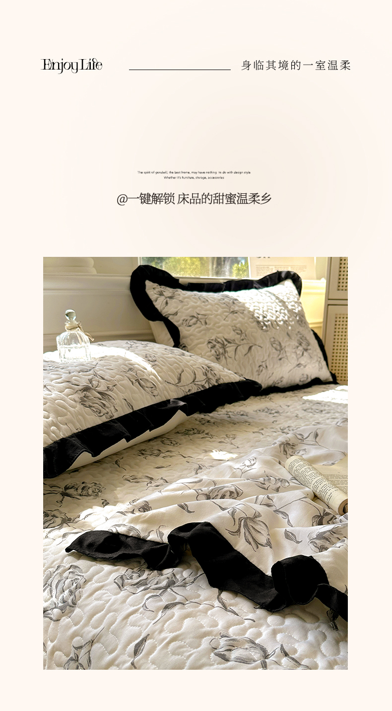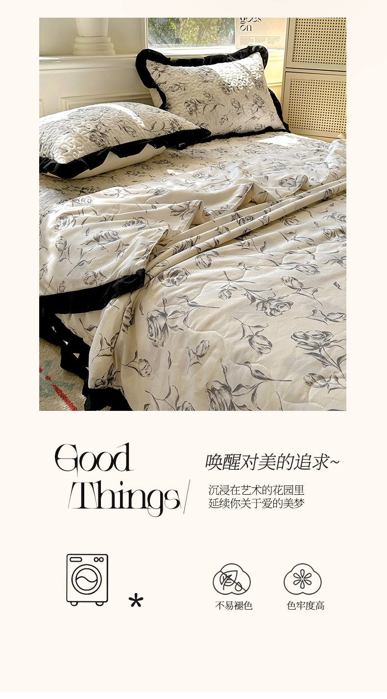 商品名称:美梦家纺 2025新款水洗棉花边夹棉床盖款四件套 玫瑰花园