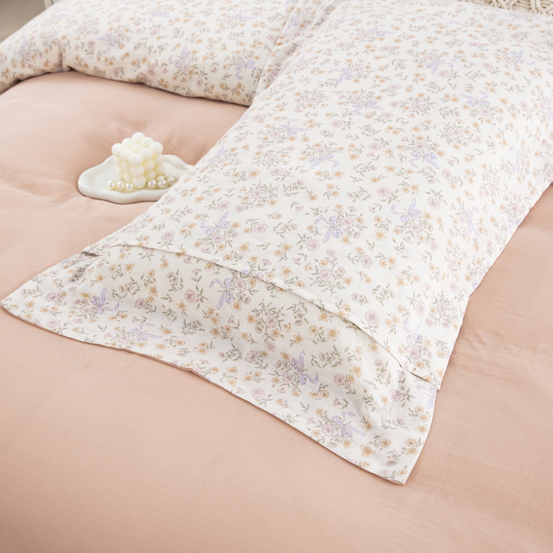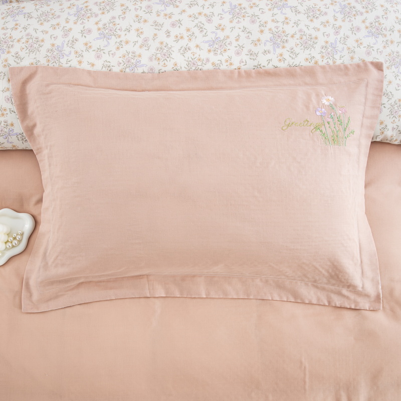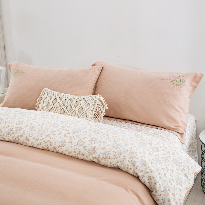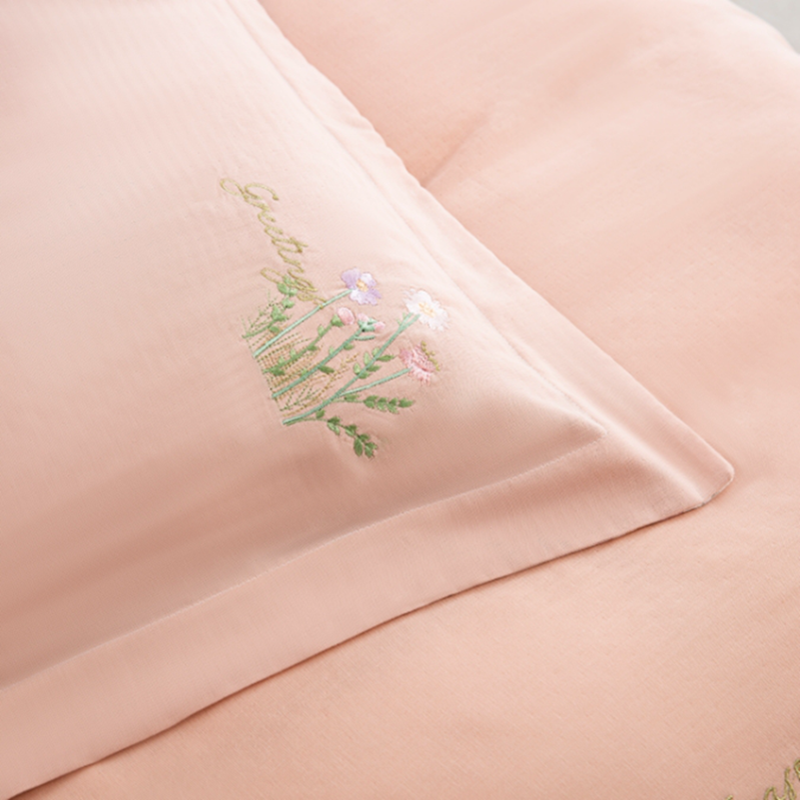 鲁爱家纺供货 2025新款全棉双层纱绣花四件套 初语-玉颜粉