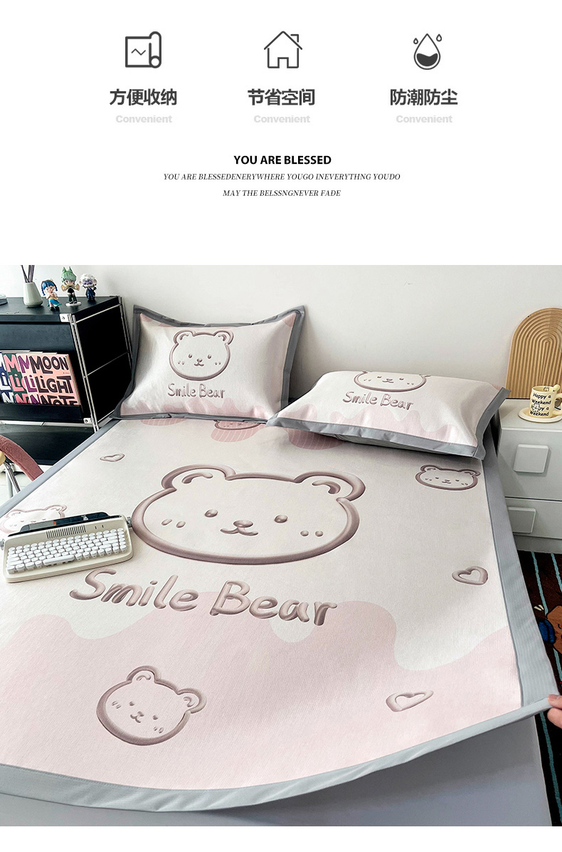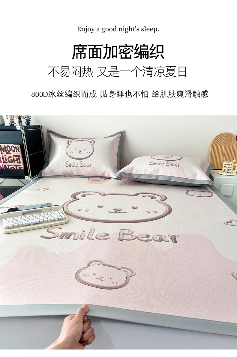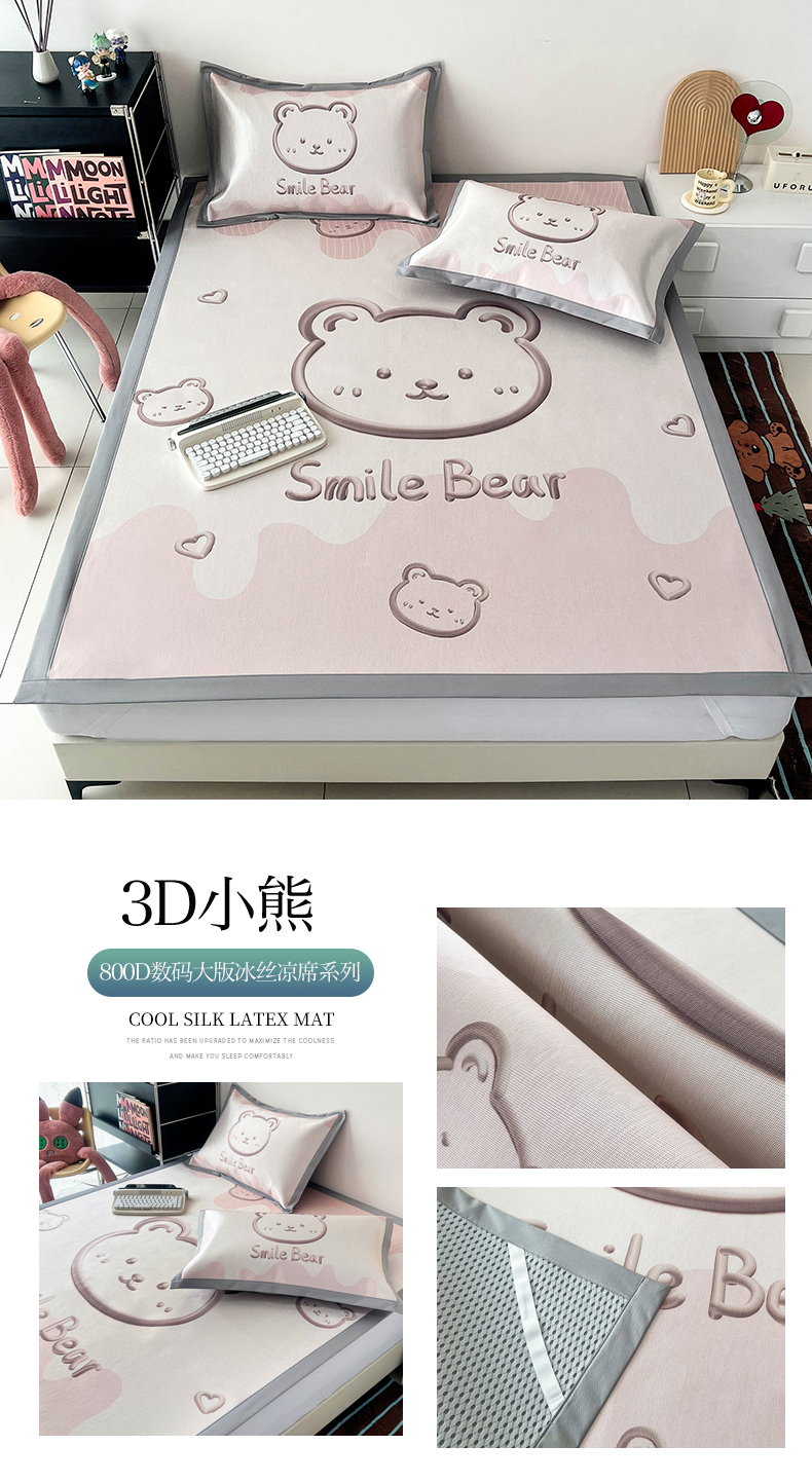 倾慕家纺 800D数码大版冰丝凉席 3D小熊