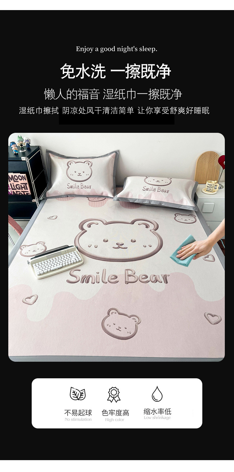 商品名称:倾慕家纺 800D数码大版冰丝凉席 3D小熊