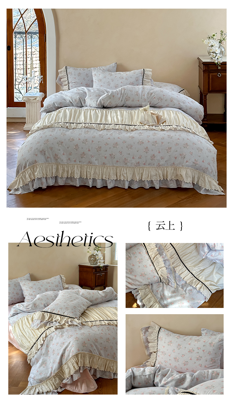 (总)婳庭家居 2024新款法式全棉印花四件套,花卉-淡粉,花卉-浅蓝