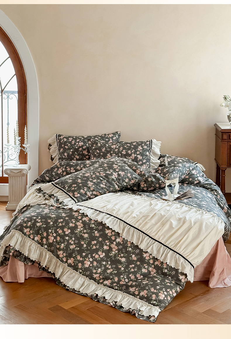 (总)婳庭家居 2025新款60s全棉纯棉MIU系少女法式蕾丝四件套,miu系少女