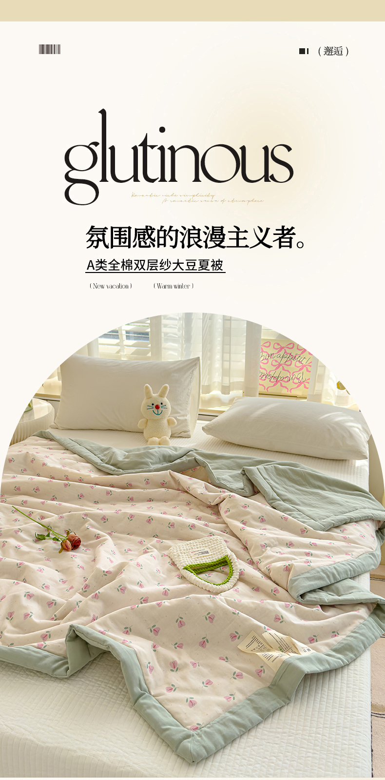 (总)2025新款A类印花泡泡纱大豆夏凉被被子被芯,叠拍图,爱心,蝴蝶结,花间光影,花韵,腊肠狗,七彩南瓜,樱桃,郁金香
