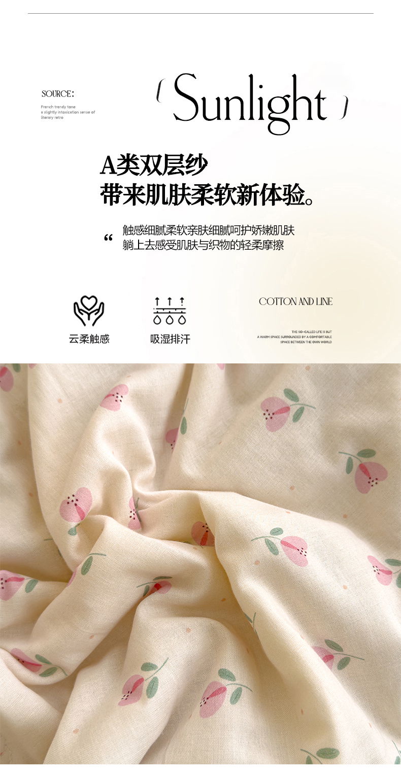 商品名称:睡棉坊 2025新款全棉有氧双层纱夏凉被空调被百分百纯棉被芯被子 洛丽塔