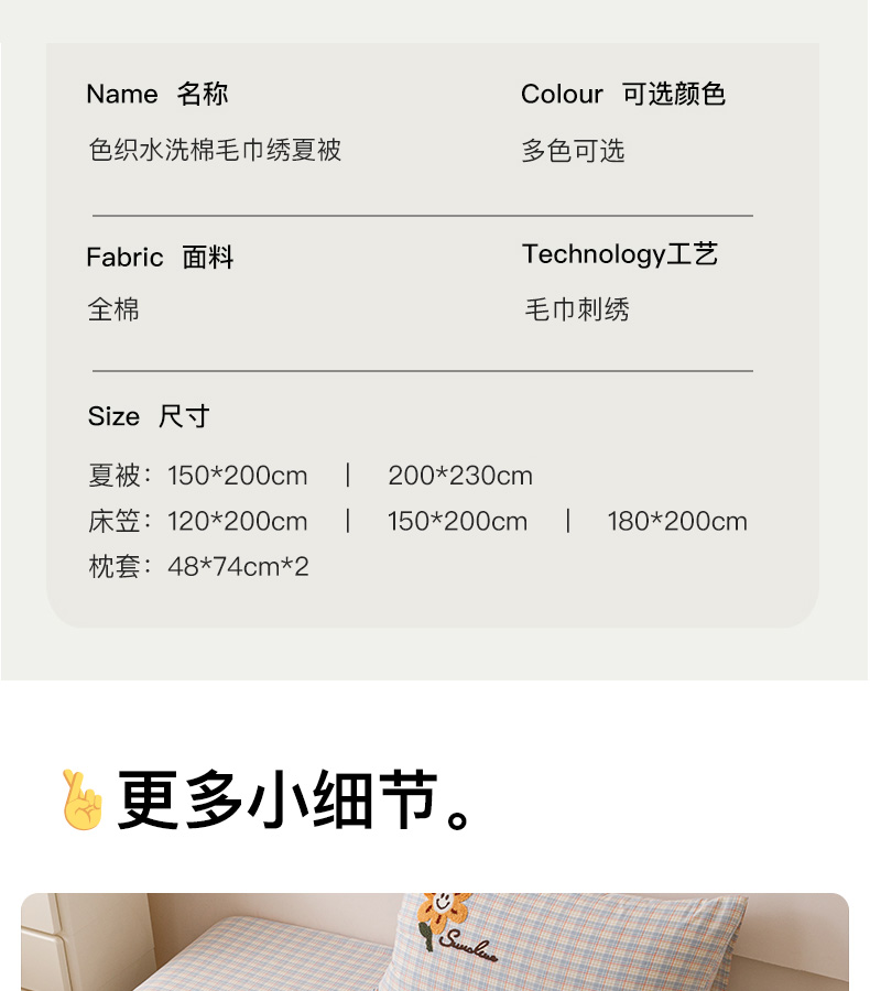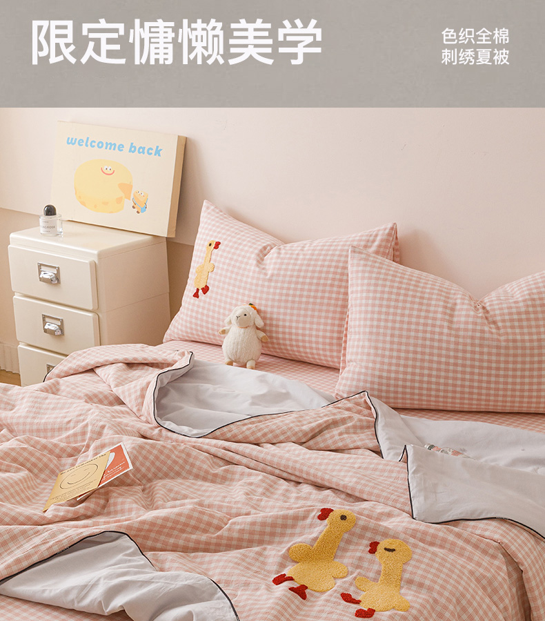 商品名称:卡姿家纺 2025新款色织水洗棉毛巾绣夏被夏凉被空调被 夏被粉小格