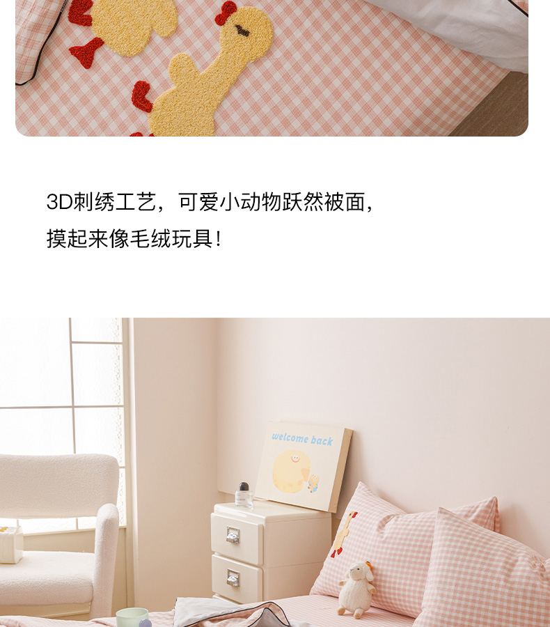 (总)卡姿家纺 2025秋冬德国奶芙绒萌趣贴布绣— 彩虹兔,彩虹兔-粉格,彩虹兔-蓝格,彩虹兔-紫格